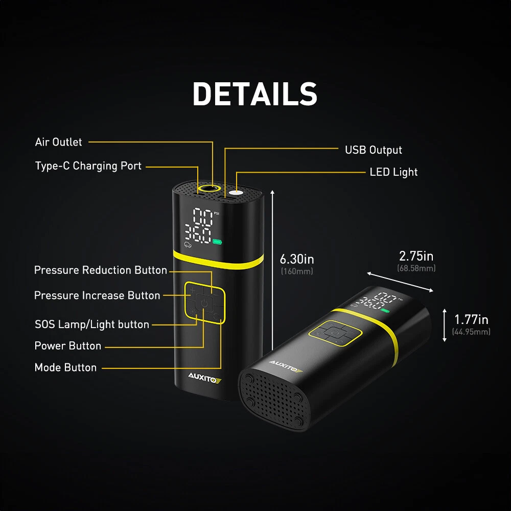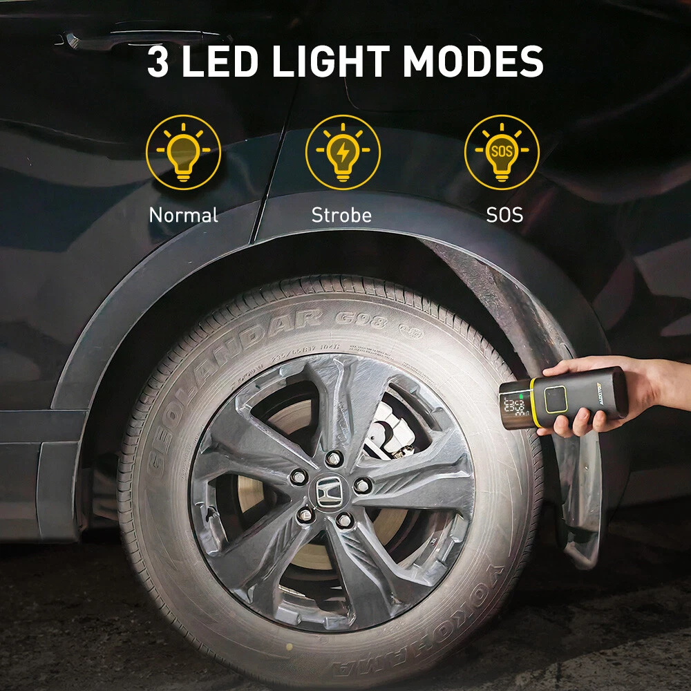 This portable tire inflator is a lifesaver! The 4+1 modes make inflating anything a breeze—bikes, cars, even sports gear. Super quiet, powerful, and the battery lasts forever. Perfect for emergencies or quick top-ups. A must-have for every car owner!