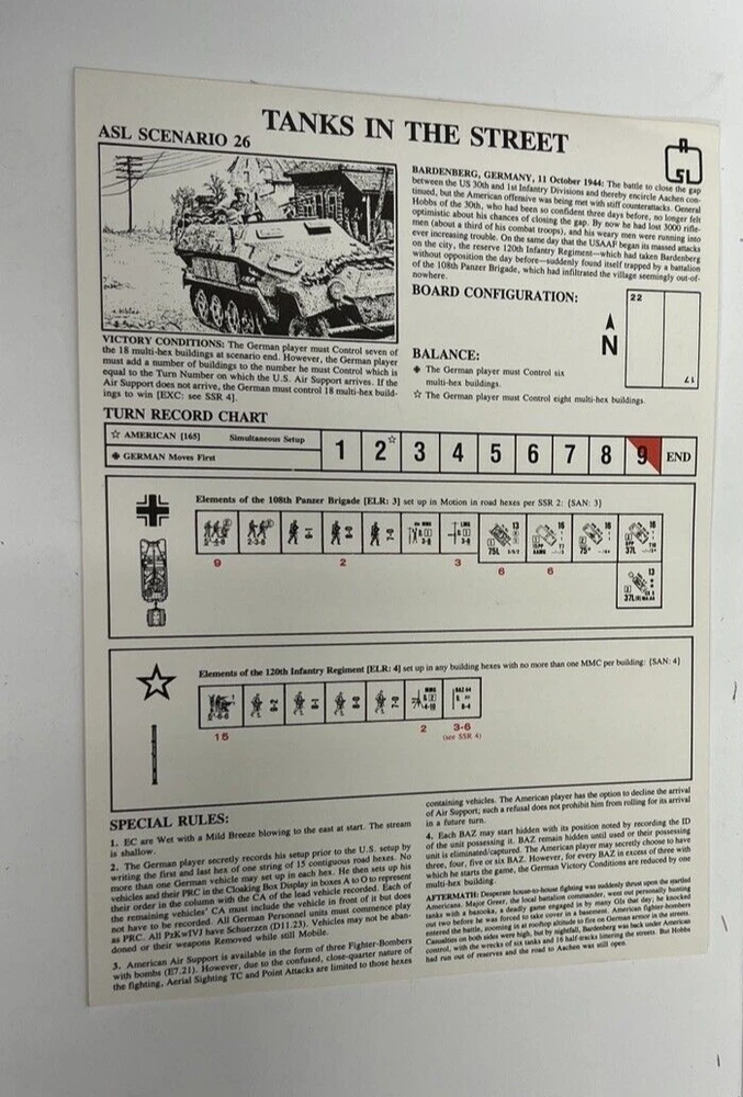 Avalon Hills Yanks ASL Module 3 Strategy Board Game - Unpunched 1987