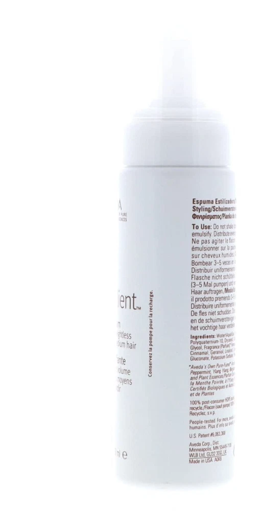 Aveda Phomollient Styling foam with organic honey Adds body, weightless volume and shine with the patented light to medium holdr For fine to medium hair