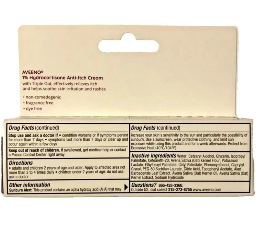 LOT OF 2 Aveeno 1% Hydrocortisone Anti Itch Cream Maximum Strength 1 oz Exp03/26.