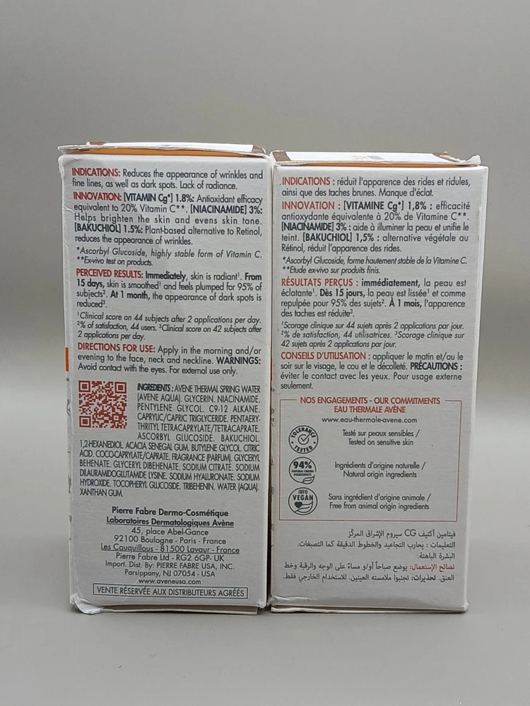 Product Description:- ๐ Avene Vitamin Active Cg Radiance Concentrated Serum โ 1.0 fl. oz (Pack of 2) โ Brighten and Revitalize Your Skin ๐ Glow from Within with Avene Vitamin Active Cg Radiance Concentrated Serum! Reveal your skinโs natural radiance with Avene Vitamin Active Cg Radiance Concentrated Serum. This powerful serum, enriched with Vitamin Cg (a stable form of Vitamin C), helps even out skin tone, brighten your complexion, and reduce signs of aging. The lightweight, fast-absorbing formula deeply nourishes, leaving your skin feeling refreshed, smooth, and glowing. โจ Why Youโll Love Avene Vitamin Active Cg Radiance Concentrated Serum: ๐ Brightens & Evens Skin Tone Infused with Vitamin Cg, this serum helps to brighten and even out your complexion, reducing dark spots and pigmentation for a luminous glow. ๐ง Boosts Skin Radiance With regular use, your skin will appear more radiant and vibrant, helping to restore your youthful glow. ๐ฑ Antioxidant Protection Vitamin Cg provides powerful antioxidant protection, defending your skin from harmful environmental stressors that can cause premature aging. ๐งด Hydrates & Revitalizes This serum hydrates the skin while revitalizing it, improving texture and making your skin feel smoother and more refreshed. ๐ Expiration Date: Check product packaging Each 1.0 fl. oz (30ml) bottle is packed with nourishing ingredients, and this listing includes 2 full-sized bottles for a long-lasting supply of radiance. ๐ Why Choose Avene Vitamin Active Cg Radiance Concentrated Serum? Brightens & Evens Skin Tone โ Perfect for achieving a glowing complexion. Boosts Skin Radiance โ Brings back your skinโs youthful, vibrant appearance. Antioxidant Protection โ Shields skin from harmful environmental factors. Hydrates & Smooths โ Leaves skin feeling soft and refreshed. Pack of 2 โ Two full-sized bottles for double the radiance. ๐ฅ Fast Shipping โ Order Now Before Itโs Gone! Get your hands on this radiance-boosting serum today and enjoy fast, reliable shipping! Limited stock, so donโt miss out! ๐ฅ Reveal Your Best Skin Today! ๐ฅ Order Avene Vitamin Active Cg Radiance Concentrated Serum now and experience the transformation to brighter, more radiant skin! Thanks For Buying.
