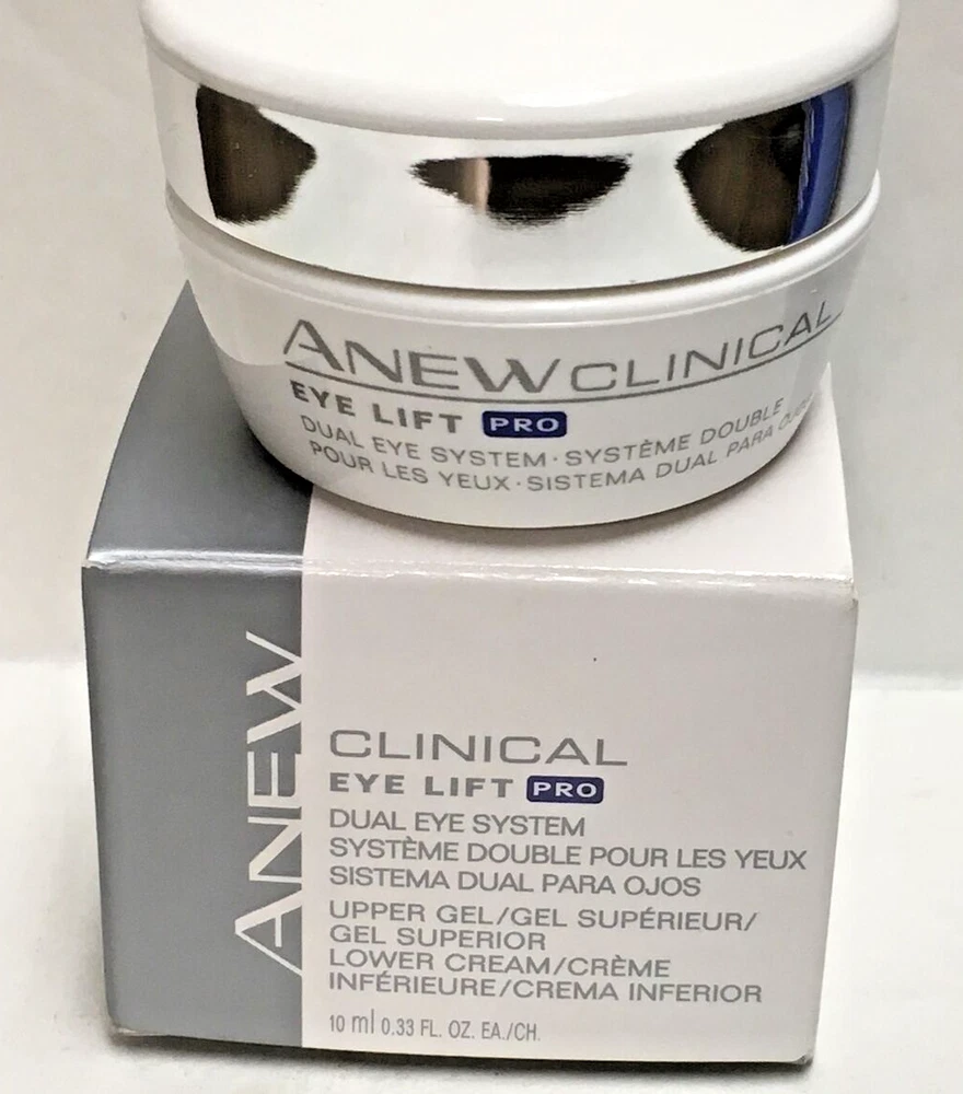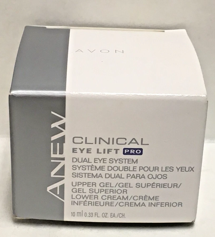 Avon Anew Clinical Eye Lift Pro Dual Eye System New in Box Factory Sealed 0.33oz. New old stock - sealed new in box The Avon Anew Clinical Eye Lift Pro Dual Eye System comes with a cream and gel. By using this upper eye gel and under-eye cream, your entire eye area will feel tighter and lifted. Benefits of Avon Anew Clinical Eye Lift Pro The benefits of Anew Clinical Eye Lift is to tighten and brighten under eye skin. You will begin to diminish the look of fine lines and sagging. Because it is formulated with injectable-grade arginine and other skin tightening ingredients, your eye area will feel tighter and lifted. The Dimensional Lift Technology works to lift skin vertically and tighten horizontally. It is formulated to strengthen from the inside out. It is suitable for sensitive skin and dermatologist-tested. • Makes eyelids feel weightless and younger • Keeps eyes looking wide awake • Reduces the appearance of crow's feet and the look of eyelid sagging • Reshapes the contours of the eye area • Upper Eye and Brow Bone Gel:Infused with Injectable-grade arginine and firming Polymer • Hypoallergenic • Suitable for sensitive skin • Allergy-tested, dermatologist-tested, ophthalmologist-tested *Based on a consumer-perception study ---------------- Smoke-free home. Items stored in cool, dry space. Please see photos for best description of the item’s condition. All photos are of the actual item listed for sale. We do our best to provide proper photos and descriptions of the items to insure there are no surprises once received. No returns will be accepted on auctioned items, open box, or used items. We encourage you to carefully review the item's description, condition, and pictures before placing a bid or making a purchase. We will ship your item within 1-2 business days of purchase. Thank you for shopping Declutteringo!