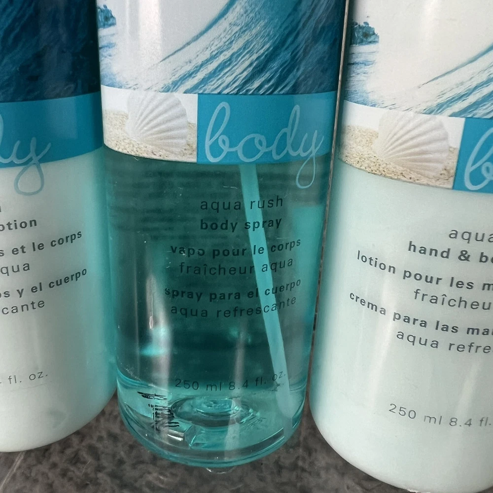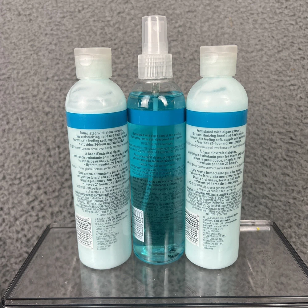 Avon Naturals Aqua Rush Nourishing Body Spray & 2 Lotions 8.4 oz DISCONTINUED.