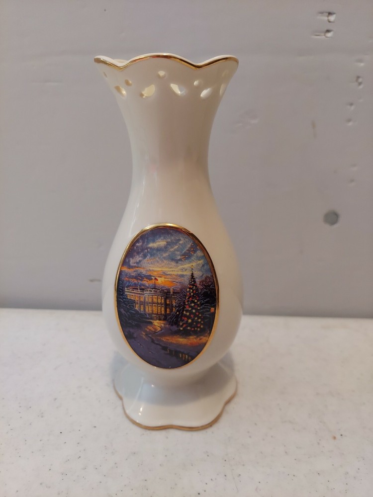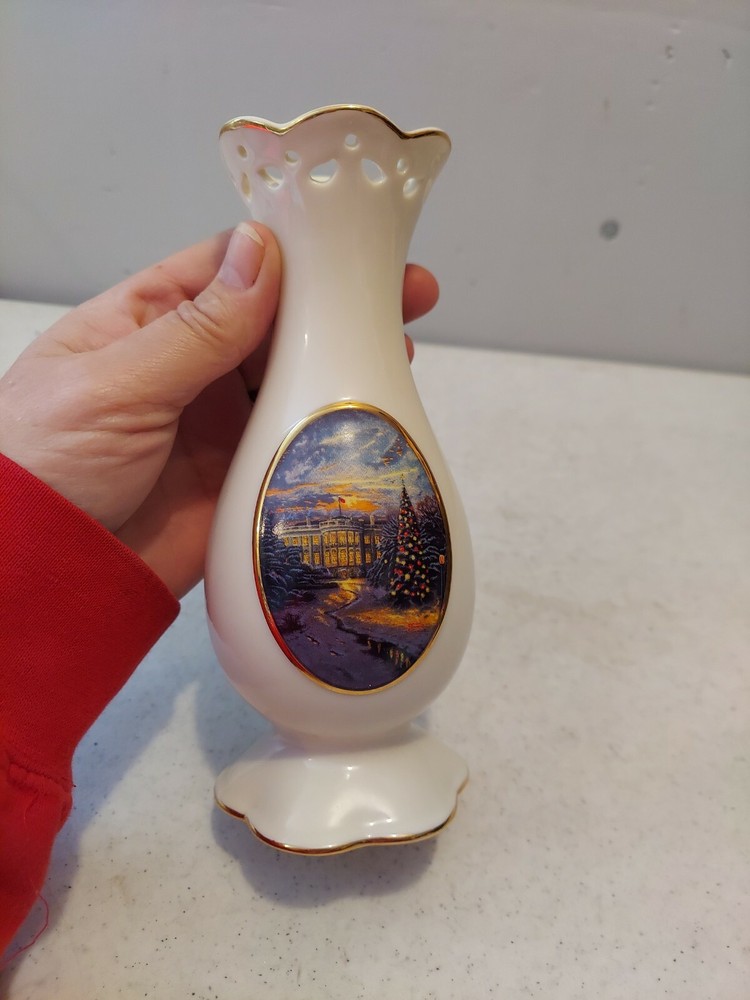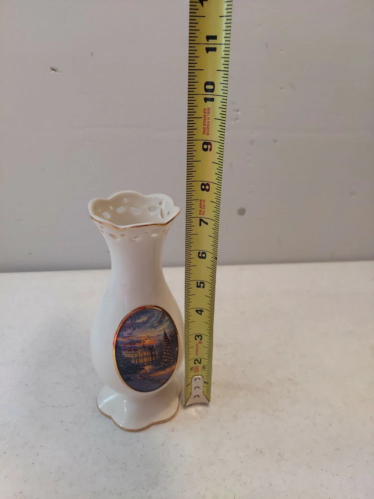 $ 12.68ceramic vase, vintage, with a band of tan drip around open end, no brand