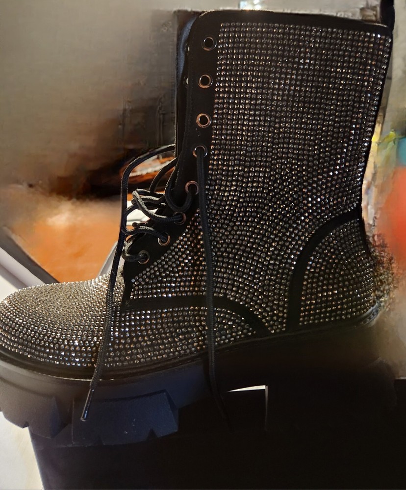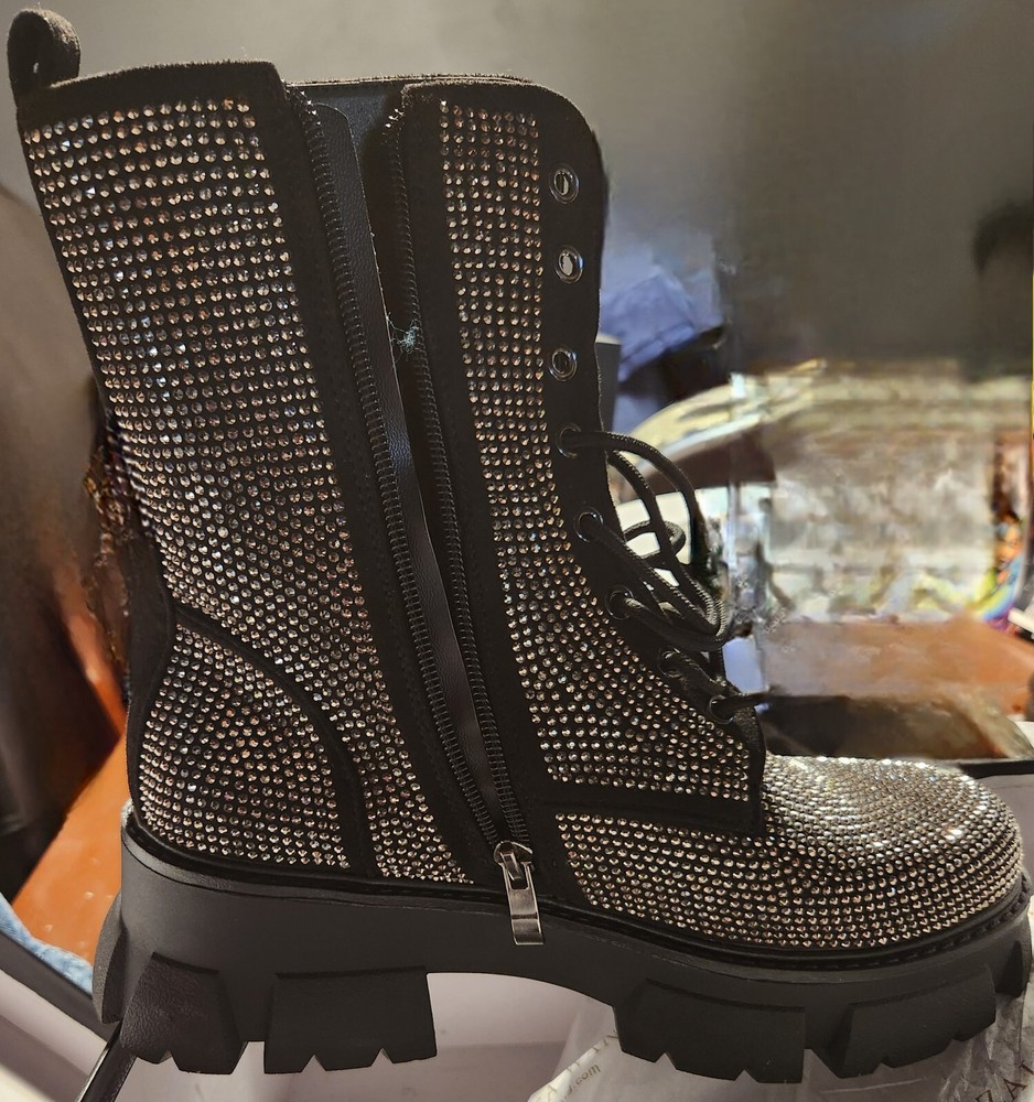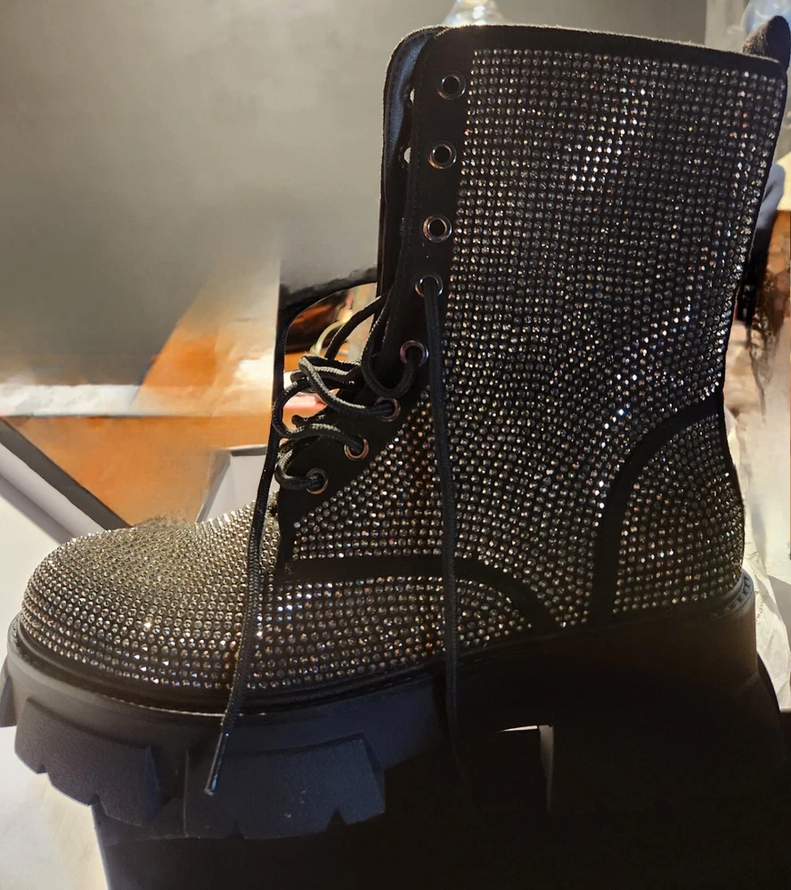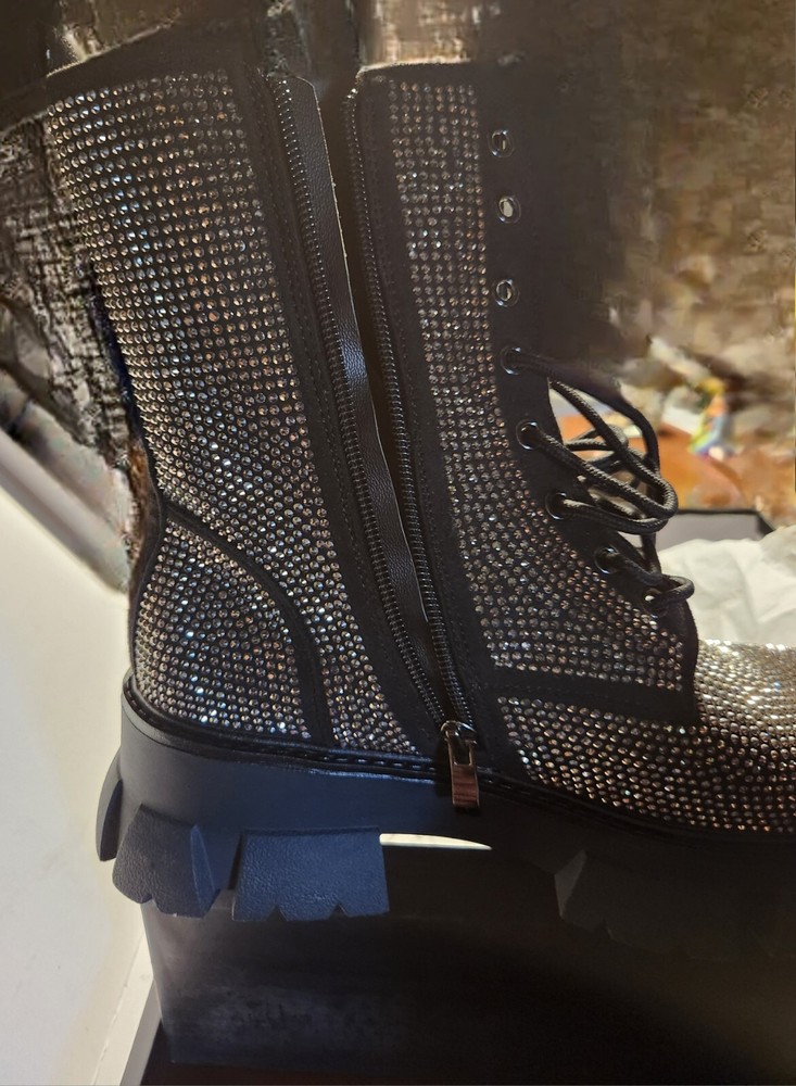 Brand new blinged out boots with a nice sturdy heal good for winter. Never worn still in original box