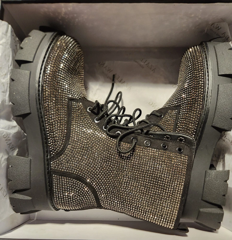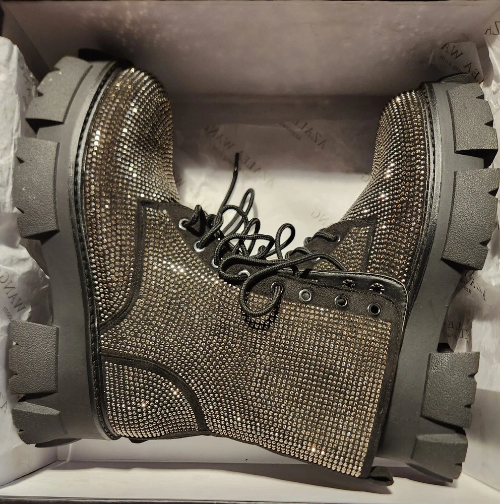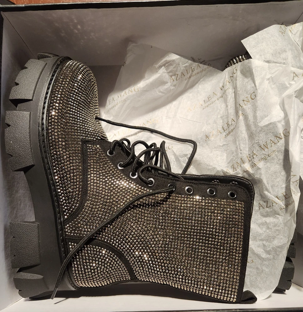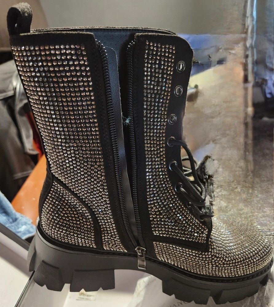 Brand new blinged out boots with a nice sturdy heal good for winter. Never worn still in original box