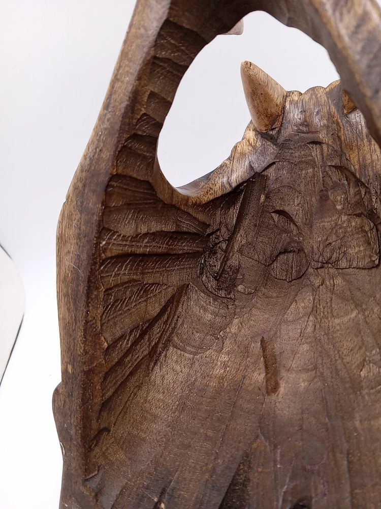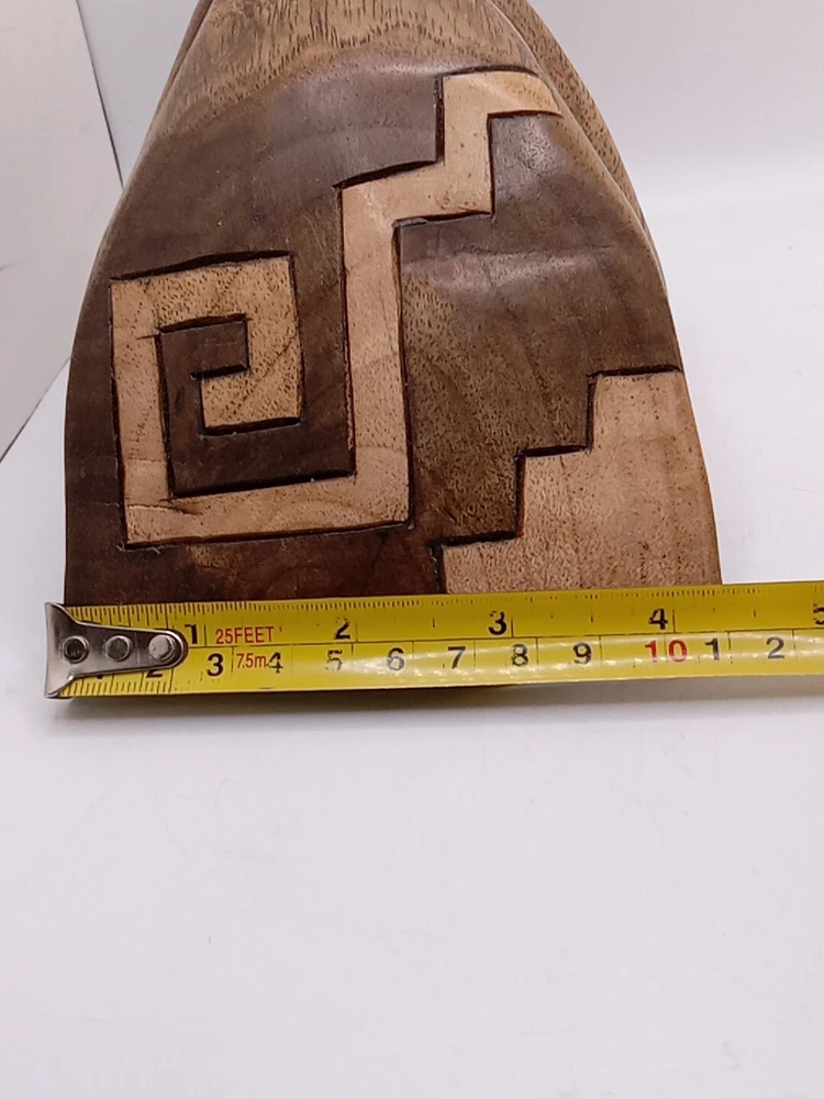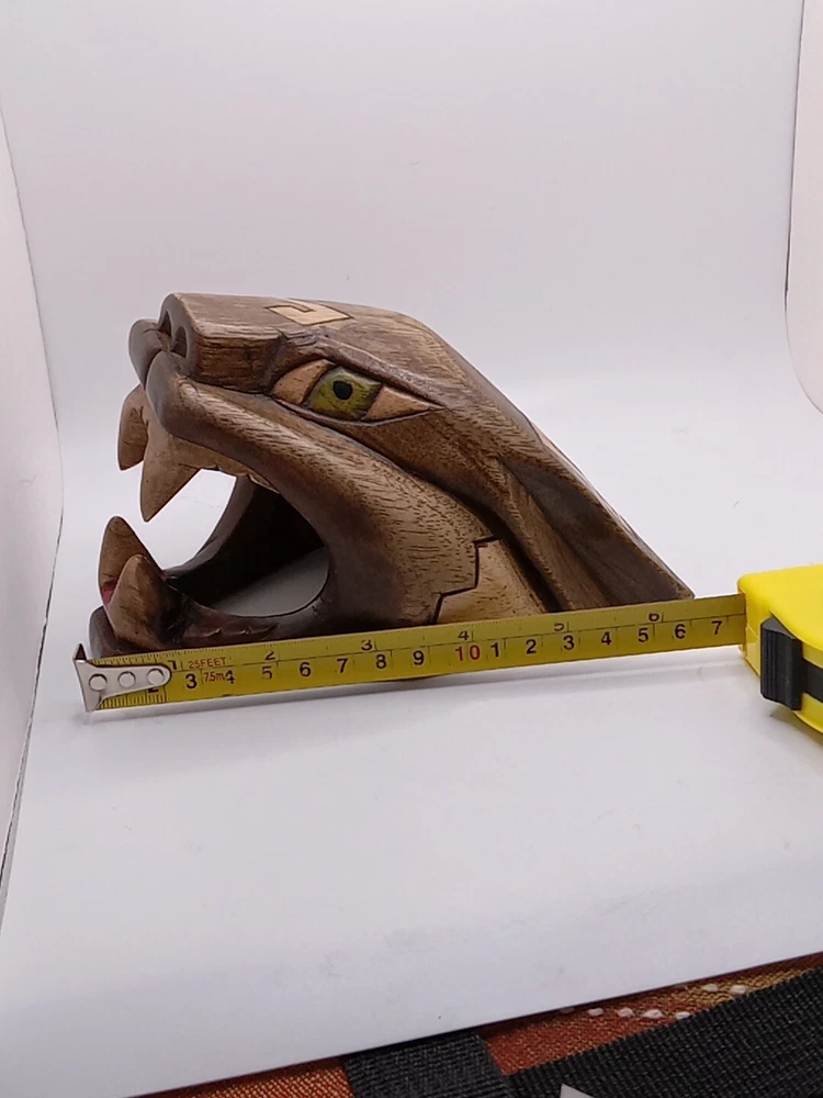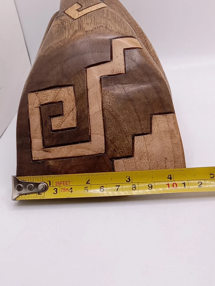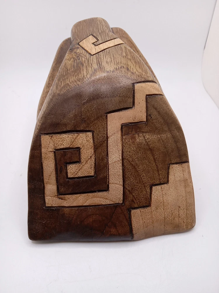 This stunning Aztec/Mayan MCM hand-carved jaguar head is a one-of-a-kind piece of Latin American folk art. The intricate details of the jaguar head are a testament to the skilled artisans who created it. The piece is perfect for collectors of Latin American culture and artifacts. The jaguar head is a symbol of strength, power, and protection in the Aztec and Mayan cultures. This piece is a unique and cool addition to any collection or home décor. Its authenticity and quality are guaranteed. Add a touch of Latin American heritage to your collection with this beautiful piece. Please see my other auctions for my other thrift store finds.