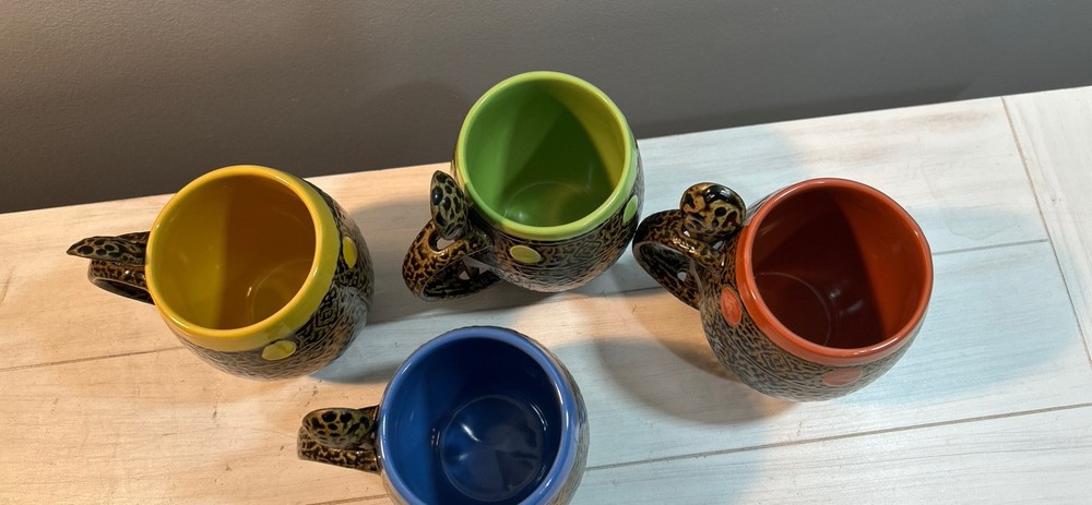 Elevate your morning routine with the Always Azul Pottery Coffee Mugs, a set of four that brings a touch of artistry to your daily coffee or tea experience. Crafted from high-quality stoneware, these mugs feature a vibrant multicolor palette and an enchanting dragonfly design . No flaws, all include spoons