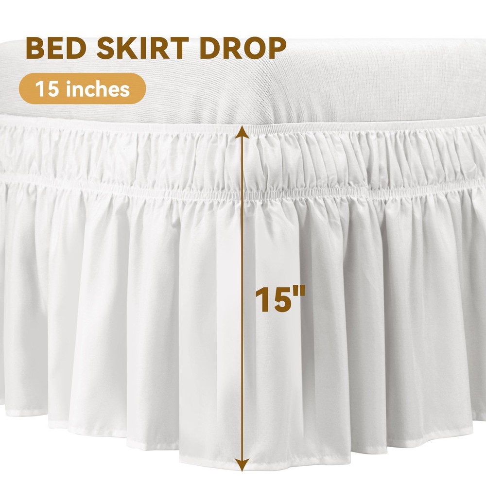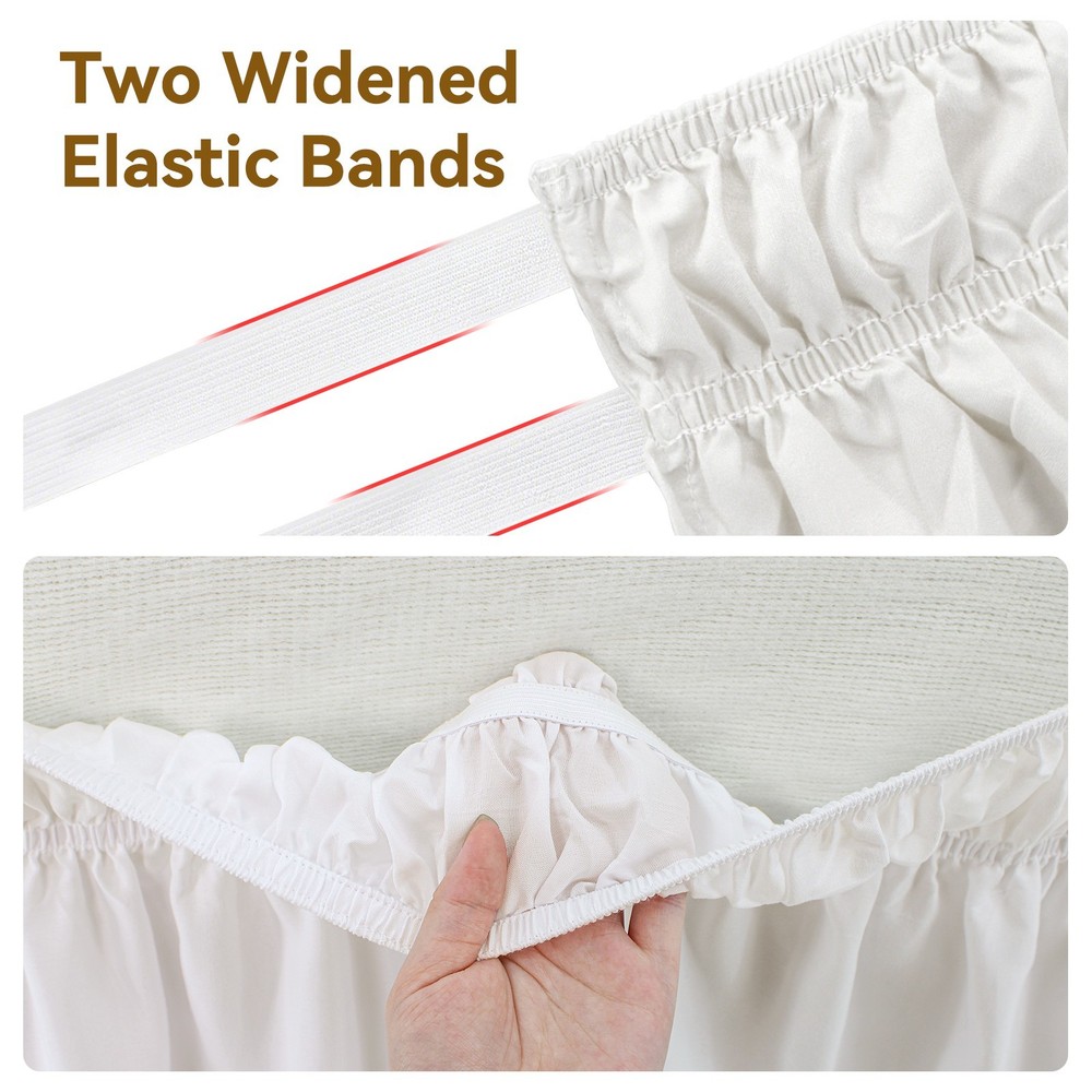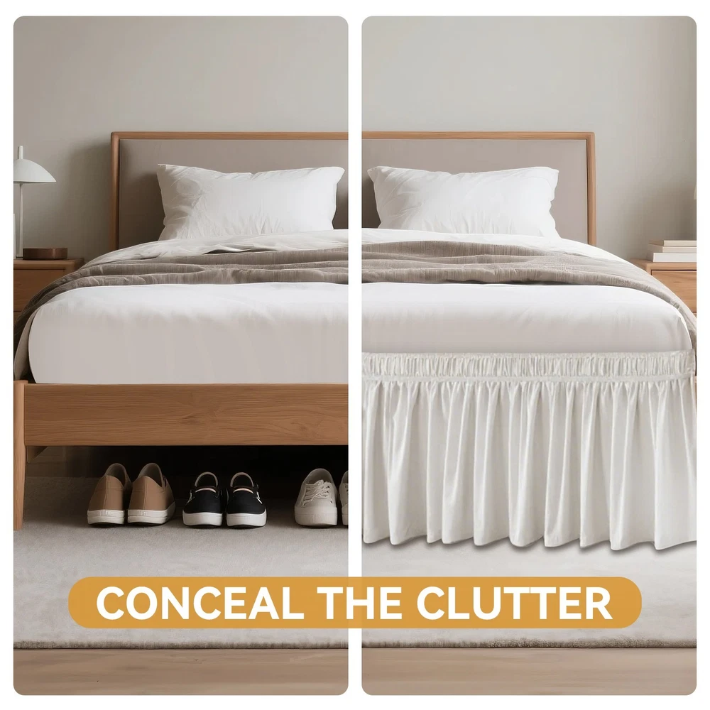 Perfect Fit for King Size Bed Skirt: Designed for King Beds (76"x80") & California King Beds (72"x84") with a 16" drop for full coverage and a polished look. No-Lift King Bed Skirt Installation: An adjustable elastic belt lets you wrap the Bed Skirt King around any mattress in seconds – no pins or heavy lifting required. Premium Bed Skirt for King Bed Fabric: Made from 100% fade/wrinkle-resistant polyester in elegant white– more durable than cotton while maintaining luxury appeal. Elevate Style with Bed Skirts King: Tailored ruffles transform your King Size Bed Skirt into a sophisticated decor statement. Effortless King Bed Skirt Care: Machine washable with quick tumble-dry low; Bed Skirt for King Bed stays crisp without ironing.