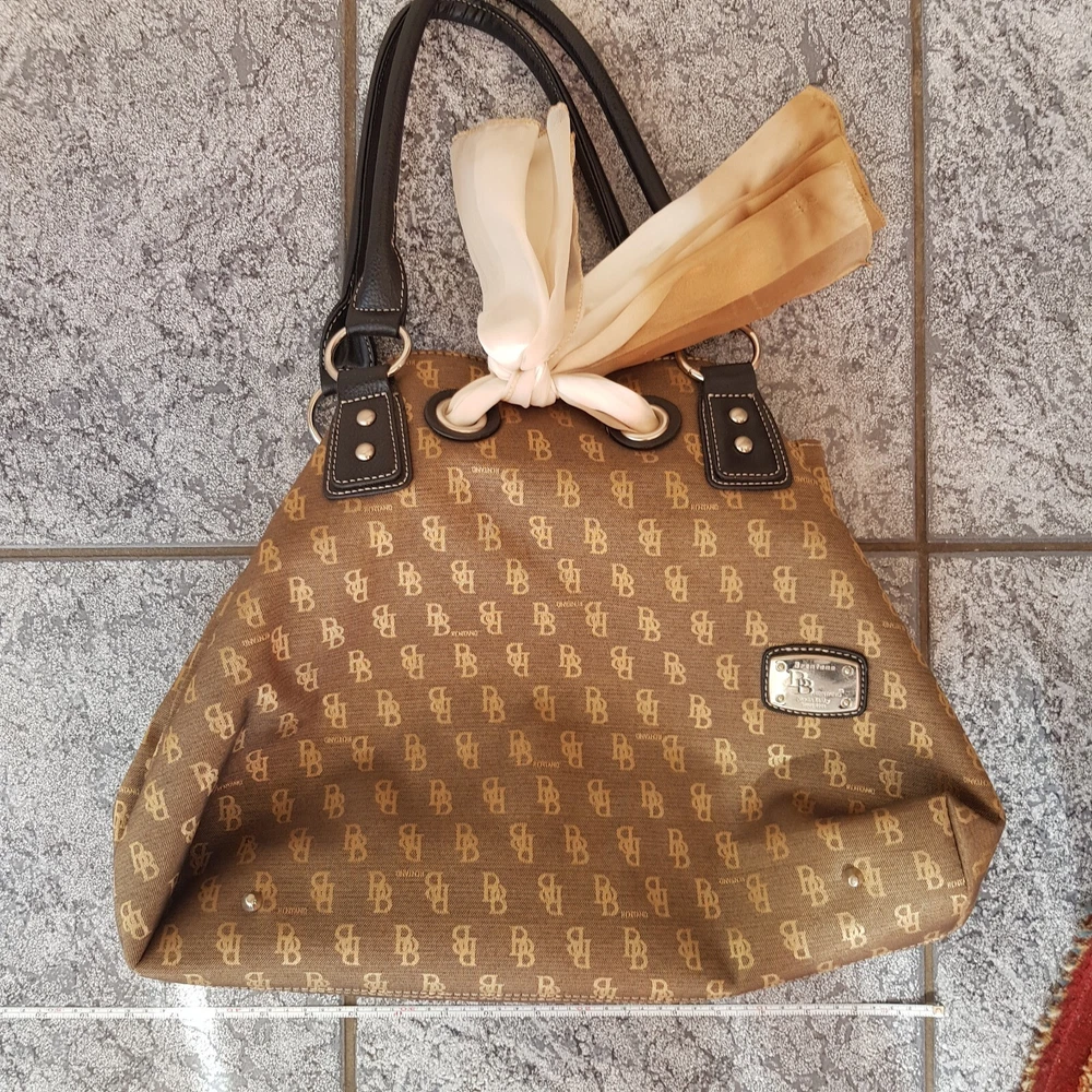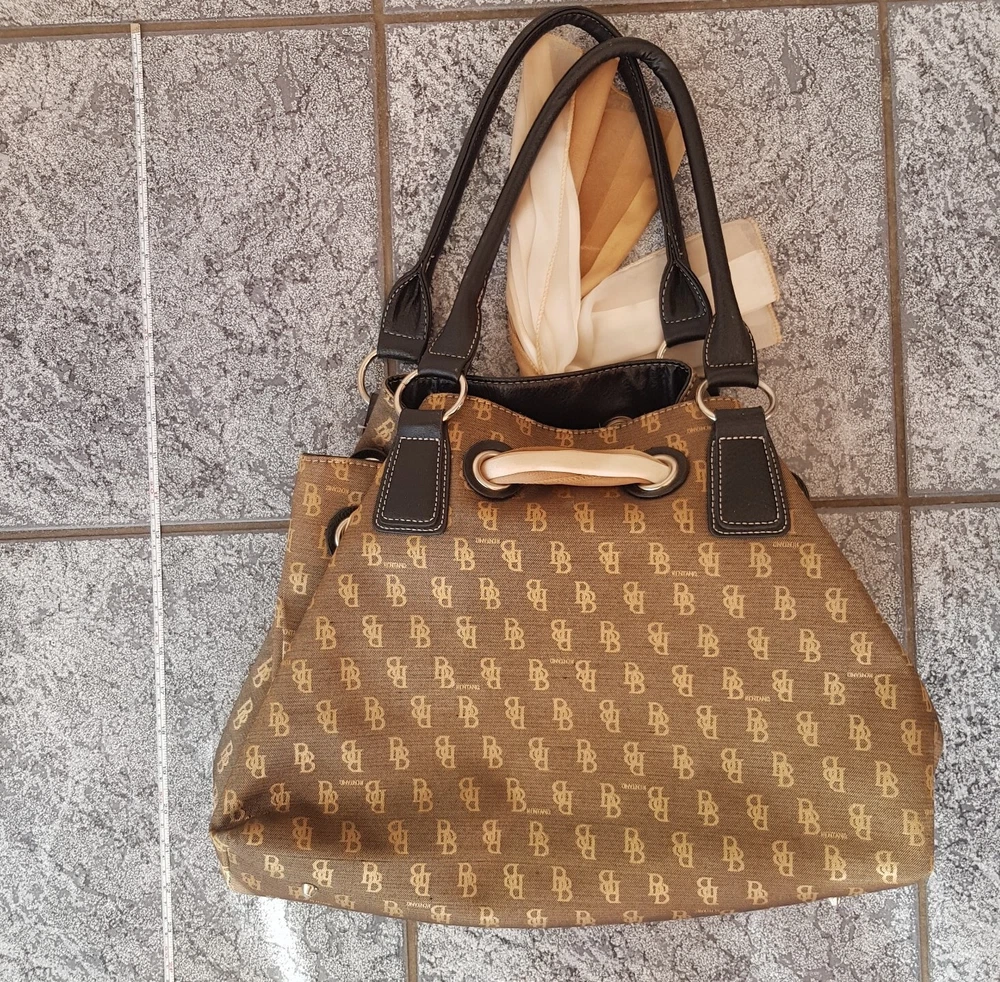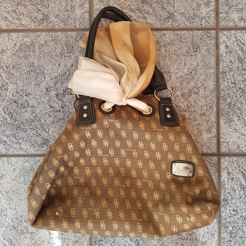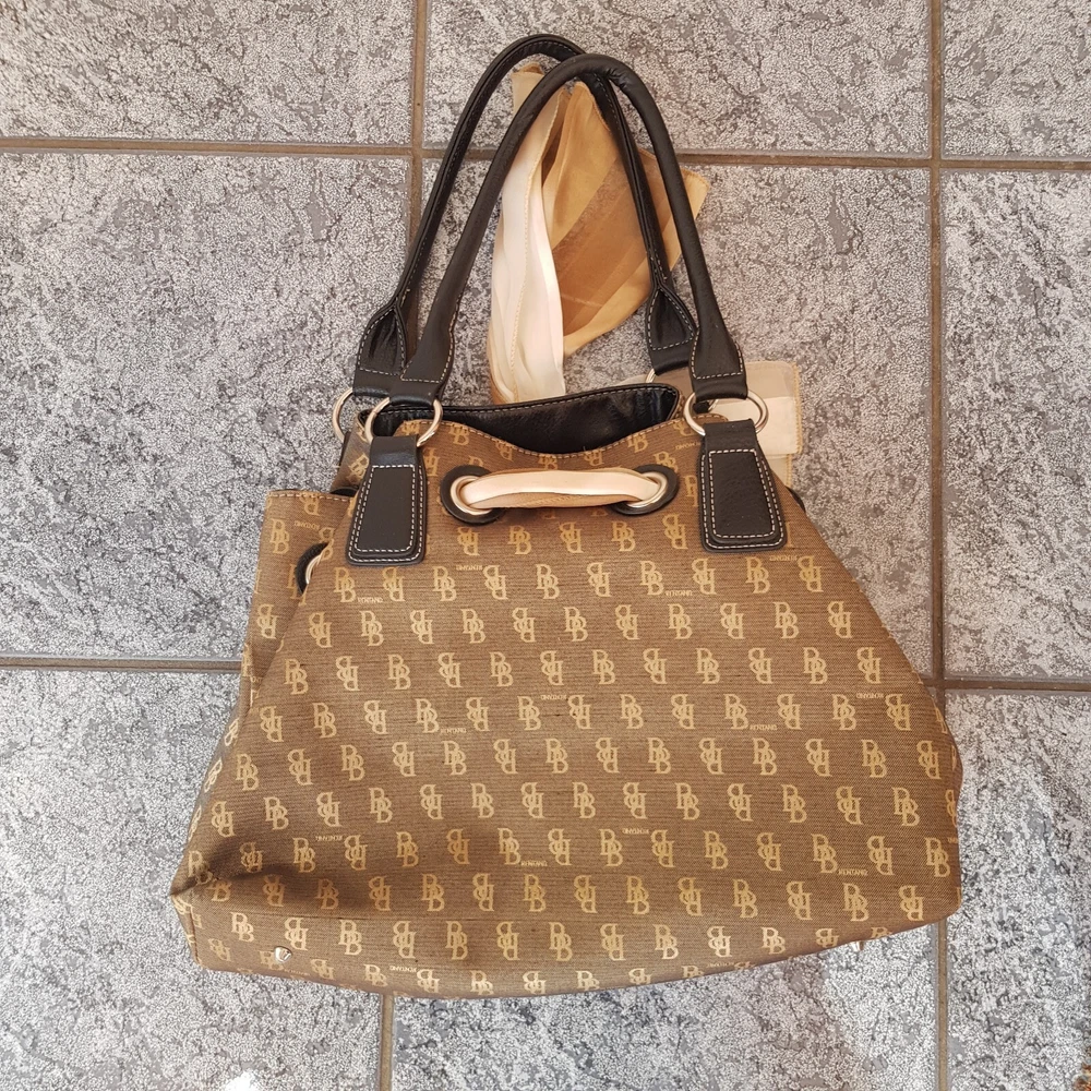 B BRENTANO BB Brown & Gold Signature Logo Canvas Handbag Purse New 23x18x6 inch. Condition is New with tags. Sent with eBay Postage Labels.