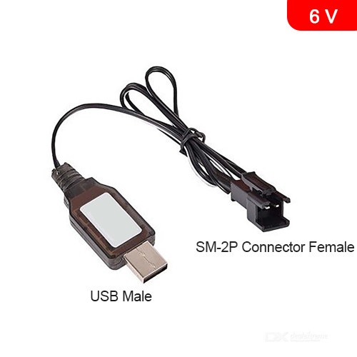 Description: Useage: Remote Control Toys, Aircraft, Drone, Quadcopter Using excellent raw materials, the power consumption is lower. Charger for 6V NI-MH battery and NI-Cd battery, with internal IC charging protection function. With charging indicator light, the red light will flash when charging and when full charged the red light turn off. Equipped with charging protection and short circuit protection. Specification: Material: Plastic Cable length: Aprox. 600mm/23.6Inch Connector A: USB Male Connector B: SM-2P Connector Female Package Includes: 1 Piece 6V Battery Charging Cable