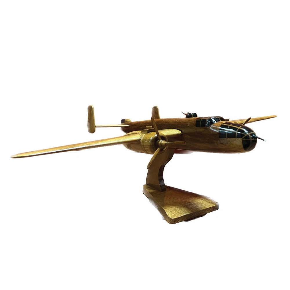 B25 Mitchell Mahogany Wood Desktop Airplane Model This desktop model is beautifully handcrafted out of reclaimed Mahogany Wood. Each unique piece is handcrafted with intense detail and finished with three coats of polyurethane coating that gives it a high gloss finish. Our desktop models are works of art that take many hours of labor to create. If you are a collector or simply want a fine art piece this handcrafted mahogany wood desktop model is sure to enhance your home or office. ADDITIONAL INFORMATION The North American B-25 Mitchell was an American twin-engined medium bomber manufactured by North American Aviation. It was used by many Allied air forces, in every theater of World War II, as well as many other air forces after the war ended, and saw service across four decades.The B-25 was named in honor of General Billy Mitchell, a pioneer of U.S. military aviation. By the end of its production, nearly 10,000 B-25s in numerous models had been built. These included a few limited variations, such as the United States Navy's and Marine Corps' PBJ-1 patrol bomber and the United States Army Air Forces' F-10 photo reconnaissance aircraft. MODEL SPECIFICATIONS B25 Mitchell SKU: B25MIT GENERAL DIMENSIONS BY MODEL TYPE Airplanes ( Wingspan: 16-18 inches) Helicopters ( Overall length: 16-18 inches) Cars & trucks ( Overall length: 12-16 inches) Motorcycles & Boats ( Overall length: 12 inches) Truck combos & Trains ( Overall length: 18-24 inches) In some cases Dimensions may vary depending on the model. If you want to know the exact size of a model please email us and we will confirm this with you. WHY OUR MODELS Handcrafted by master craftsmen using only the highest grade materials Our models are a fusion of art and history and a museum quality masterpiece. The perfect gift for any aviation enthusiast, history buff, military personnel, Automobile enthusiast, or collector. Most importantly; We can custom create any model of your choice. HOW THEY ARE MADE Each of our desktop models is hand-carved out of reclaimed mahogany and other fine woods by our seasoned model builders to bring a faithful scale reproduction of your favorite aircraft. More than mere displays. These models serve as family treasures that could be passed on to the younger generations. You will surely appreciate the craftsmanship and history behind our models. We use leftover wood from the furniture manufacturing industry. No trees are purposely cut for our wooden models. Our wooden desktop models are not always made to a specific scale but rather they are made so that you can easily fit and display them on your desk or bookcase. Our crafters are highly skilled artists that take great care in making our beautiful replicas to perfection. Due to color variations on the wood we can not guarantee that the color consistency will always be the same. We ship the models semi-assembled and some simple final assembly may be required. The wings for the airplanes and the blades for the helicopters will have to be plugged in but no glue is required. We guarantee our models and if for any reason you are not 100% happy with the wood model you receive let us know and we will send you a replacement right away. KEY PRODUCT FEATURES 100% Handmade out of reclaimed wood There is 30+ hours of work on each model Each model is unique so no two models are exactly alike Comes finished with high gloss Polyurethane. SHIPPING DETAILS ***INTERNATIONAL CUSTOMERS READ BELOW PLEASE WE OFFER FREE SHIPPING ON ALL DOMESTIC ORDERS WITHIN THE USA. We ship all stock models within 3-7 days from the day you place your order. Transit time is from 5-7 days depending on your location. Please allow 2-3 days in addition for processing time. We ship all custom models within 8-10 weeks from the day you place your order. Transit time is 7-10 days depending on your location. Please allow 2-3 days in addition for processing time. ***FOR INTERNATIONAL ORDERS. Yes. We can ship internationally but you must send us a message first with a link to the product (s) you want to order from our website and we will send you a quote for shipping. If you agree we then create a custom link for your order so you can place the order. You must provide us with a phone number for the shipping company after you place the order as we can not ship Internationally without a phone number. Allow an extra 7-10 days for delivery beyond the regular shipping time. WE ARE NOT responsible for any additional fees that may be incurred by Customs at destination. We urge you to check with your local postal service in your respective country before you order. In the event you do not claim your merchandise and it is returned you will be responsible for the shipping costs and restocking fees and any additional fees incurred while the merchandise gets returned. Please do provide us with a good phone number when you place your international orders in order to include it in the shipping documents as we can not ship without a phone number. WE THANK YOU ! We thank you for taking the time to view our crafts. We are blessed by customers like you who support our small business. From the Master Craftsmen and women that pick the wood and create the wonderful models you see to the people that make it possible for you to view our items on the web. We are grateful and we THANK YOU!. God bless you.