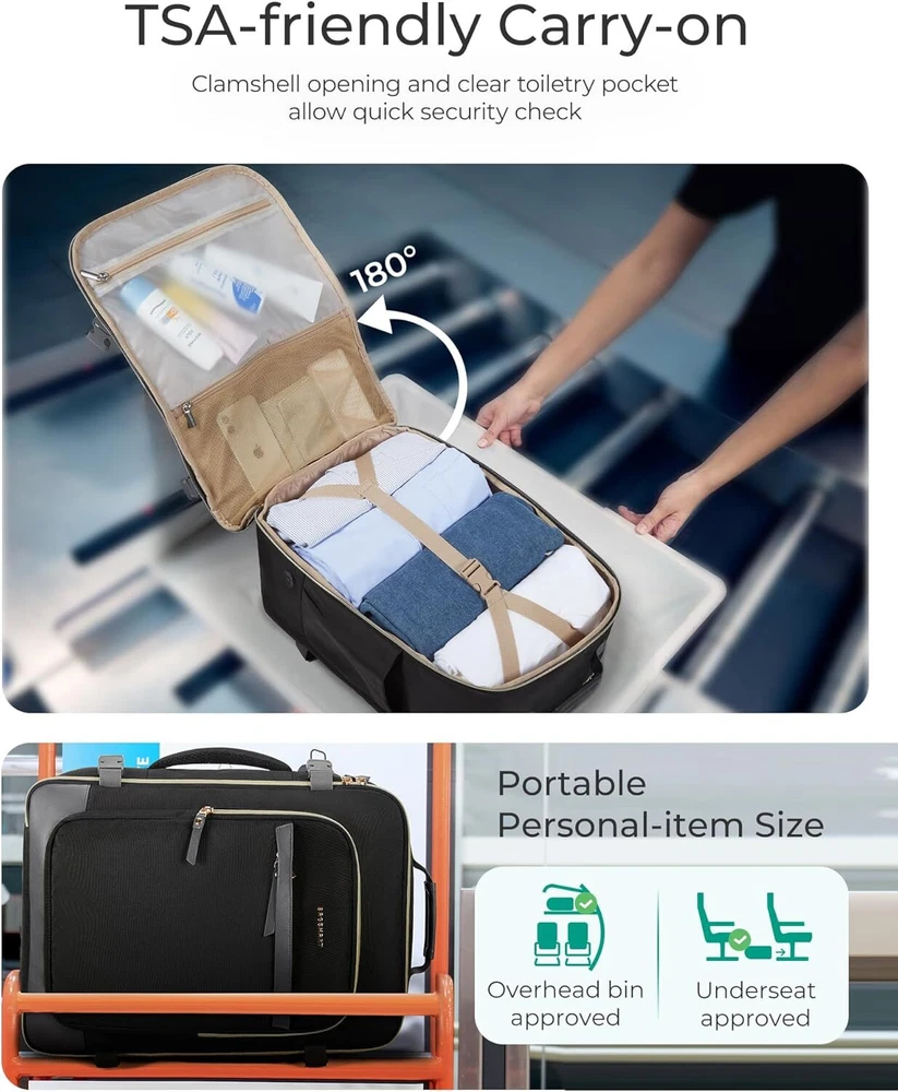 BAGSMART Travel Backpack for Women, Large Personal Item Bag, 40L Beige Product Details Product Dimensions: 8 x 13 x 18 inches Item Weight: 1.83 pounds Department: unisex-adult Age Range Description: Adult Number Of Items: 1 Capacity Total: 32 Liters 【Fashionably Functional Design】Elevate your travel style with a travel backpack carry on flight approved that blends fashion and functionality. Crafted from sturdy, scratch-resistant materials, this women's suitcase for travel stands out for its durability and chic appearance, making it perfect for modern female travelers who value both style and substance 【Ample Storage with 40L Capacity】Whether you're off for a weekend getaway or an extended trip, enjoy the spaciousness of 40L capacity. This carry on backpack accommodates everything from multiple outfits to tech gear, including a dedicated compartment for a 17.3-inch laptop. It's designed to meet the packing needs of dynamic female travelers who require versatility and organization 【Advanced Cleanliness Solutions】Maintain impeccable hygiene with an integrated antimicrobial lining in the wet bag of travel backpack for women. Crafted from premium waterproof material, it efficiently separates damp items or toiletries, safeguarding the rest of your belongings from moisture and odors 【Streamlined Travel Compliance】Navigate airports seamlessly with a travel backpack that meets optimal carry-on dimensions (18 x 13 x 8.2 inches). Compliant with major airline guidelines, it fits effortlessly into overhead compartments and under seats, ensuring hassle-free travel transitions.This personal item travel bag is also great for college, work, business and outdoor activities 【Ergonomic Comfort and Durability】The backpack for women features experience superior comfort with ergonomic, breathable shoulder straps and reinforced stitching for durability. Designed to endure extensive travel while providing ergonomic support, it's tailored for the active lifestyle of today's female travelers