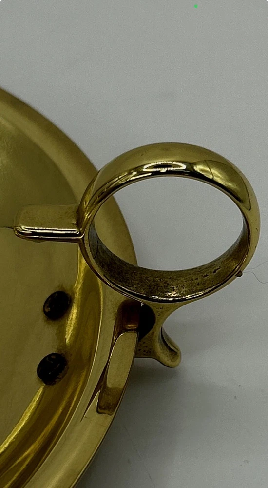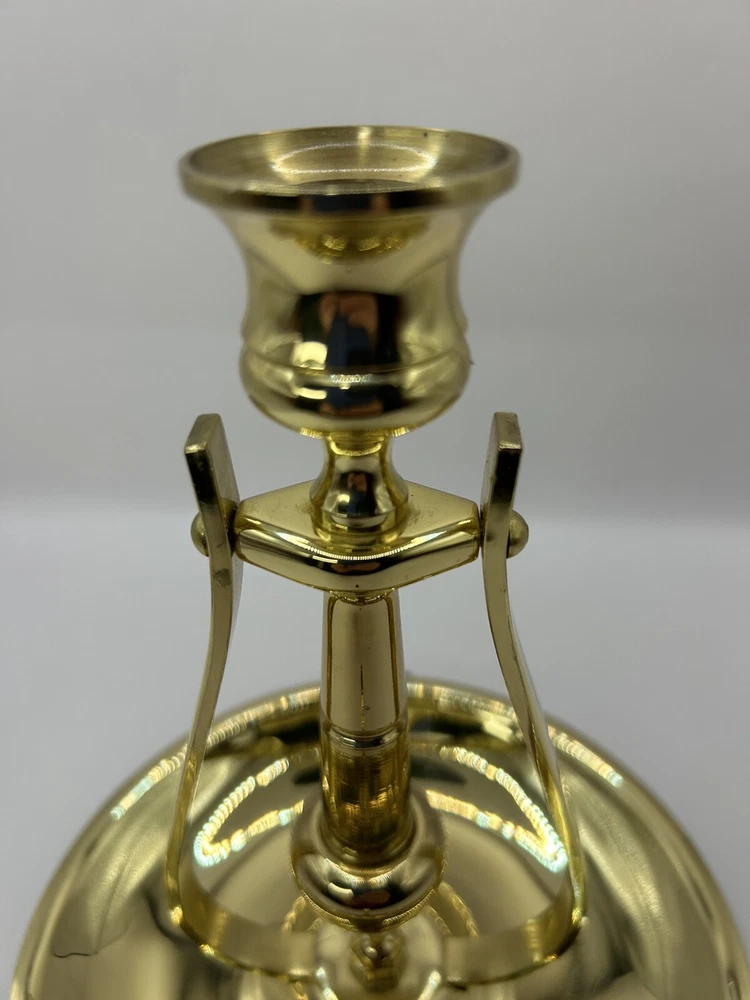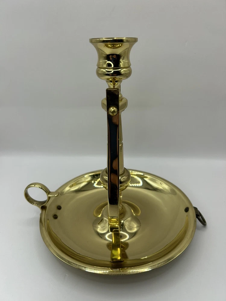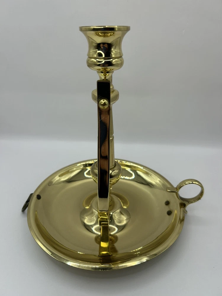This is previously used and has some blemishes / scratches due to usage. No breaks or cracks. Add a touch of elegance to your home decor with this stunning BALDWIN Brass Chamberstick Candlestick. Crafted in the United States, this original piece features a polished brass finish and a nautical design that adds a unique charm to any room. The candlestick is medium-sized, measuring 7 inches in height and 6-1/8 inches in width, with a weight of 1lb 2oz. This beautiful candle holder is perfect for any occasion and is sure to create a warm, cozy atmosphere in your home. It features a hanging and swinging design that adds a touch of sophistication to your decor. The BALDWIN Brass Chamberstick Candlestick is a must-have for collectors and is an excellent addition to any decorative collection.