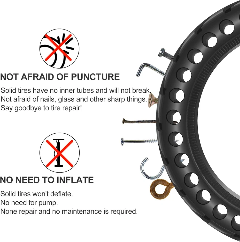 Store New Arrivals Add to Favorite View Feedback Contact BANGTING 50/75-6.1 Solid Tires for Electric Scooter, 8 1/2 X2 Tire for Gotrax Description Item model number B20201101-1 Rim Size 85 Inches Load Index 70 Speed Rating A8 Tread Depth 0.34 Inches Section Width 2 Inches Brand BANGTING Item Diameter 8.5 Inches Country of Origin China Load Capacity 330.7 Pounds Rim Width 2 Feet Item Weight 1.02 Kilograms Manufacturer Part Number B20201101-1 Tread Type Non-Directional Construction Type Radial Color Black 1PCS Seasons Year Round Model 8.5x2 inch Tire Size 8.5x2 Manufacturer BANGTING 【Compatible】- Specially designed for tires of electric scooters with 8.5 x 2, 50/75-6.1, 8 1/2 x2, including Gotrax GXL V2 / XR / APEX, Xiaomi Pro 2 / M365 / M365 Pro / 1S / 3 / 3 Lite / Essential and others. Please check the pictures to confirm your original tire size and compatibility before ordering. If your scooter's original tire size is 8.5 x 2, 50/75-6.1, 8 1/2 x2, please feel free to use our tires. 【High Quality Material】- These BANGTING electric scooter tires are made of high quality rubber material, providing excellent anti-shock performance and buffer pressure through special hollow design. The ridged surface provides excellent grip and is abrasion resistant, burst and pressure resistant, lightweight and durable. 【Best Alternative】- Say goodbye to flat tires with our solid rubber tires, which offer you a safer and more comfortable riding experience compared to traditional pneumatic tires. 【Strong and Durable】- Made of high quality natural rubber from southern Thailand, our tires are twice as hard as ordinary tires. Heat resistant, scratch resistant and durable, ensuring a stable and comfortable ride. 【Worry-Free Tires】- No inflation, no patches, no tubes and no bike pump required, for convenient and maintenance-free riding. Product Description BANGTING Honeycomb Solid Tire Replacement for Scooter Tires (Diameter 8.5" Wide 2" ) Compatible Models: Xiaomi M365 / Xiaomi M365 pro / Xiaomi 1s / Xiaomi Pro 2 / Xiaomi Essential Cecotec Bongo Serie A / Cecotec Bongo Serie A Connected Hiboy MAX V2 / Hiboy S2 Ducati Pro1 Evo / Ducati Pro1 Plus Gotrax GXL / Gotrax XR Zwheel Serie E9 Denver Sco-8535 Vivobike S2 / Vivobike S3 ...... For All Scooter Tires (Diameter 8.5" Wide 2" ) The full honeycomb tires are made of high-quality natural rubber. It is twice as thick as other products and is characterized by good penetration resistance, excellent tear resistance, scratch resistance and durability, which makes it more stable and comfortable when driving. It is more durable than other conventional inflated tires. Let yourself fall in love with this new scooter. Come! Your scooter is now ready to drive! Anti-Slip Layer Thanks to its anti-slip layer, it can be prevent the tire from slipping in snowy and rainy weather, without danger for the scooter. Anti-Drop Layer The inner layer of the tire has an anti-drop layer. Make sure the tire is tightly connected to the hub of the wheel. It's just as safe even if it's faster. Honeycombs Design Honeycombs with supports and newly increased holes can provide the better shock absorption. And the honeycomb holes can dissipate heat more quickly and serve for a longer time. How to Install? Step 1 Before installing, please soak the tire in hot water of 50-80 ℃ of 5-10 minutes making it softer and easier to install. Ensure the the tire is completely immersed please. Step 2 Cover the inside of the tire with soapy water or with a special tire lubricant (avoid using the grease lubricant, otherwise the tire will be damaged). Step 3 Place either side of the hub on the tire and step on this side (it is recommended to place another tire under this tire) Step 4 Use the professional tire levers to make the hub enter the tire. ABOUT US We offer the best prices around on high quality products. Our E-store includes media such as books, movies, music and games while offering electronics, toys, sporting apparel, clothing, tools, general home, garden items and more. SHIPPING We are always working hard to ensure your package arrives as soon as possible. Please understand that some factors like weather, high postal traffic, and the performance of shipping companies are outside of our control. We offer free shipping to the lower 48 states and ship within 5 business days of payment, usually sooner. We do not accept P.O. Boxes. Please provide a physical address. RETURNS We offer a 30-Day Return Policy on items which you are not completely satisfied with. You have the option for a full-refund or an exchange of the item. No returns are available on items shipped outside of the USA. PAYMENT We accept PayPal. CONTACT US This page content is yet to come Please ad us to your favorite seller and visit again later Thank You CUSTOMER SATISFACTION We try our very best to make sure every customer is completely satisfied. If there's a problem, message us! We're happy to help.