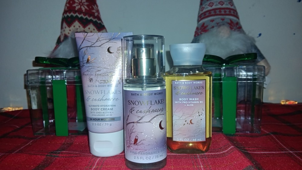 BATH & BODY WORKS "CASHMERE SNOWFLAKES!" 3 PIECE GIFT SET WITH HANDMADE BOW.
