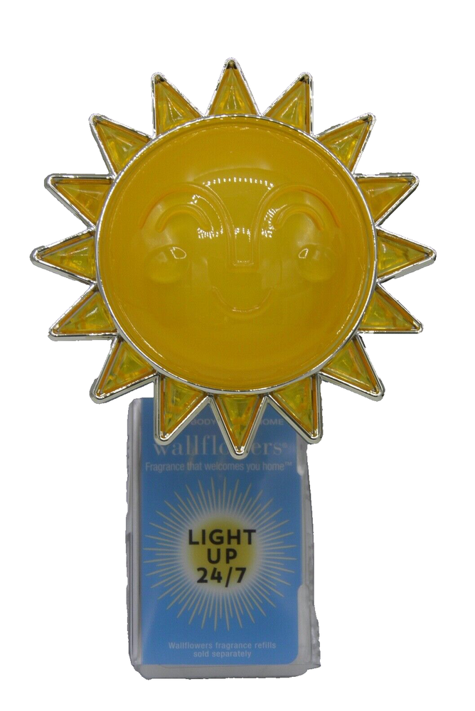Bath & Body Works SUN Nightlight Wallflower Plug To get started, twist right (clockwise) to uncap the refill and twist left (counter-clockwise) to attach it to the plug. Always keep your plug and fragrance refill upright. (Bonus: our rotating plug lets you use a vertical or horizontal outlet!) Because Wallflowers refills contain fragrance oils that may damage finished surfaces and some plastics, always keep a 12" clearance above your plug to prevent damage to surrounding surfaces. This listing is NOT sponsored by, affiliated with, or representative of the mentioned brand(s), trade name(s), or trademark(s) and does not claim any ownership of such. All trademarks or brands mentioned in this listing are registered trademarks of their original owners who reserve all their rights and ownership. The use or mention of any trade name, product name, or trademark is necessary and for identification and is for reference purposes only. Mailing Address - We will ONLY ship to the address on file with eBay. Before making a purchase, please ensure that your address is correct. We may otherwise cancel the sale. Handling Time - Our handling time is set to THREE BUSINESS DAYS. We ship packages Monday - Friday, except on holidays.