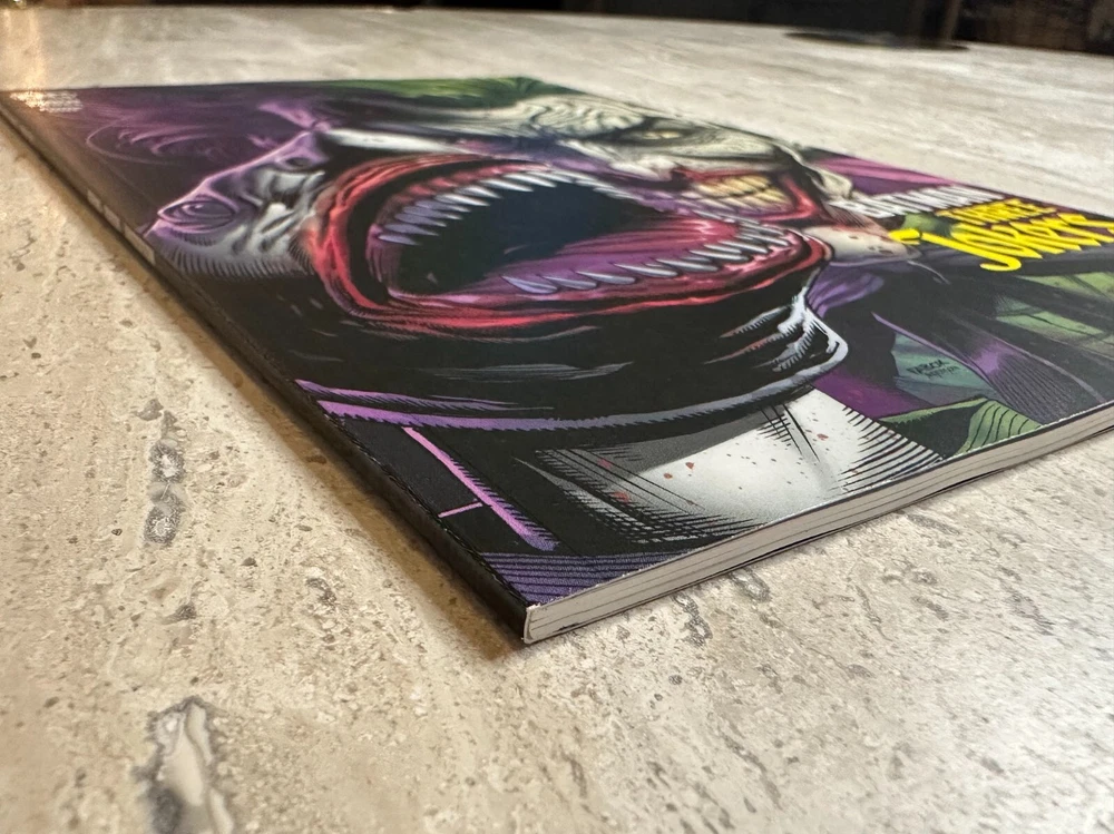 BATMAN: THREE JOKERS BOOK ONE Check out OUR STORE for a huge sale on thousands of comics! The photos are of the actual comic for sale! All comics will come in bag and boards . WE SHIP SECURELY : Your book will be in bubble wrap, placed in a GEMINI comic mailer. Large orders may come back securely in a box if it can not fit in a mailer. WE COMBINE SHIPPING : If you buy multiple listings, we will refund the excess shipping amount back to you! We have a massive amount of listings currently , check out our other listings. Check out our 100% Positive Feedback so you can buy confidently. GRADING We are not professional comic book graders. We want you to be happy with the product you receive . We always use photos of the actual comic for sale, we never use stock photos or photos from past sales. We try to list details when possible, and will always have a note of any major damage (missing covers, stains, pages, etc). We try to take many high quality photos of the comic at different angles to help you accurately decide the condition of the comic. Please feel free to ask any questions or request more photos. We lists grades in two different ways. Sometimes we assign an actual grade (NM, VF, FN) because we feel we can confidently say that book is that grade or higher. Sometimes we will list books or lots with a general high grade, mid grade or low grade. This means the book will fit into this range, but we haven't spent enough time to grade them with letter grades. SHIPPING All comics will be shipped with bags and boards. We make sure your books are SECURE . Typically, depending on book size and amount, 1-5 comics will ship in a cardboard flash comic mailer. Larger lots that will not fit in a comic mailer, will by packaged in a box filled with bubble wrap so they won't move around. By default, we will ship USPS FIRST CLASS. Please send us a message and request an invoice for other options. We will combine shipping on comics that we have listed . We only ship during the business week.
