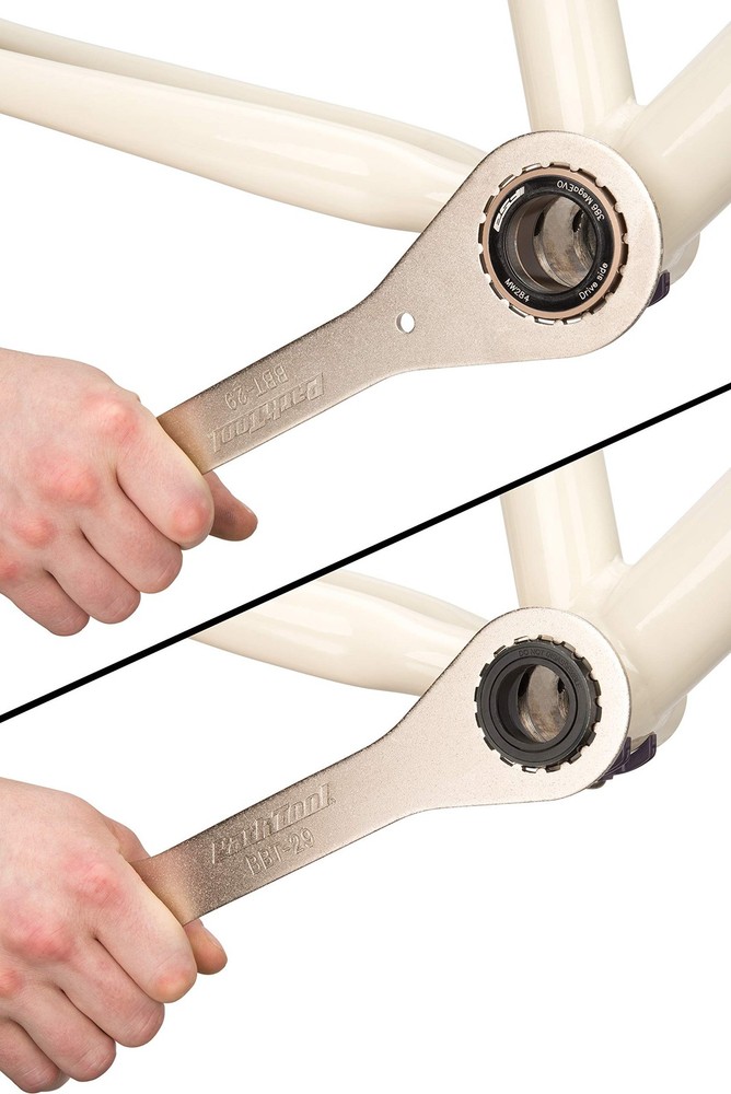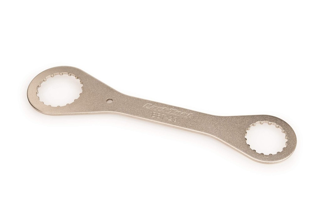 Double-ended bottom bracket wrench Smaller end fits 16-notch bearing cups with an outside diameter of 39mm (i.e. Shimano Dura-Ace 9000 series and XTR 980 series) Larger end fits 16-notch bearing cups with an outside diameter of 48.5mm (i.e. FSA MegoEvo)