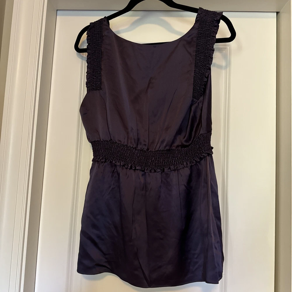 Deep purple pullover sleeveless blouse BCBG Max Azria. Women’s size large. Empire style with slight cross over on chest.