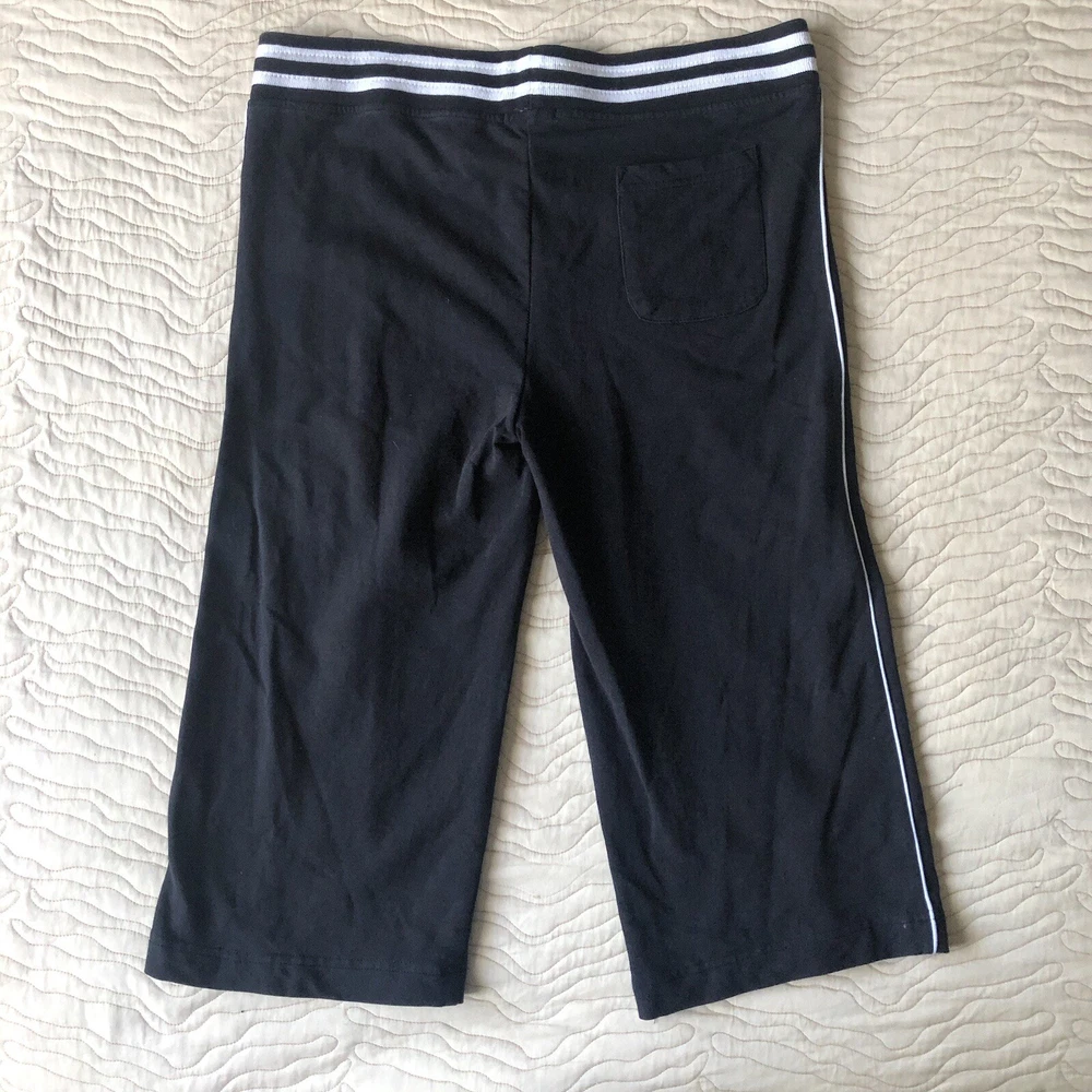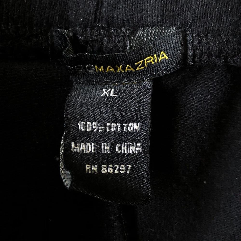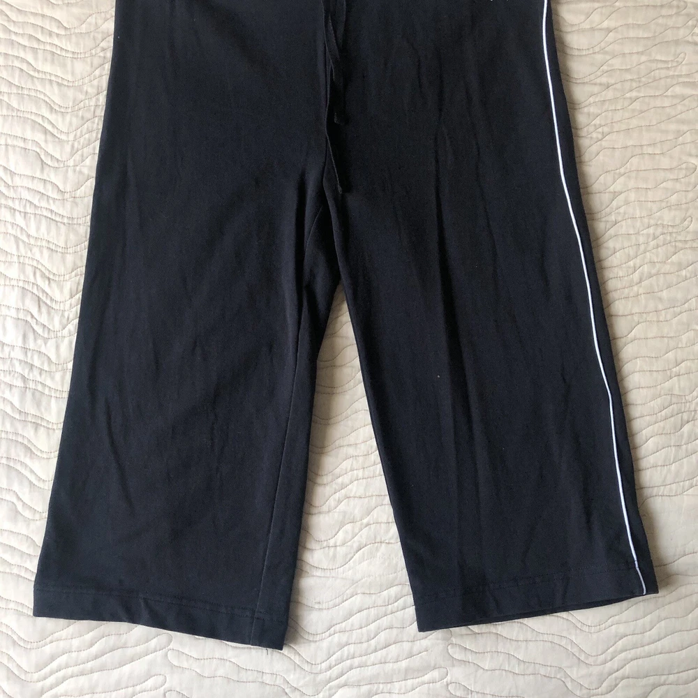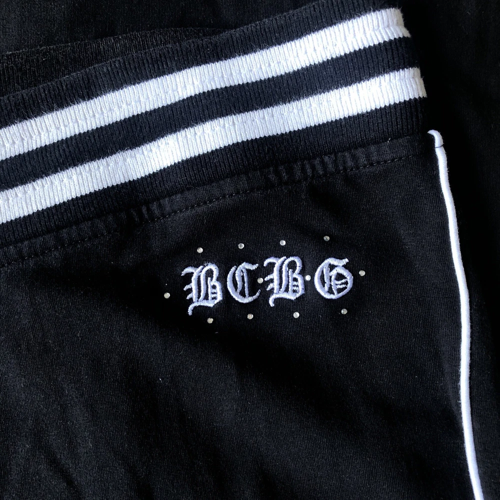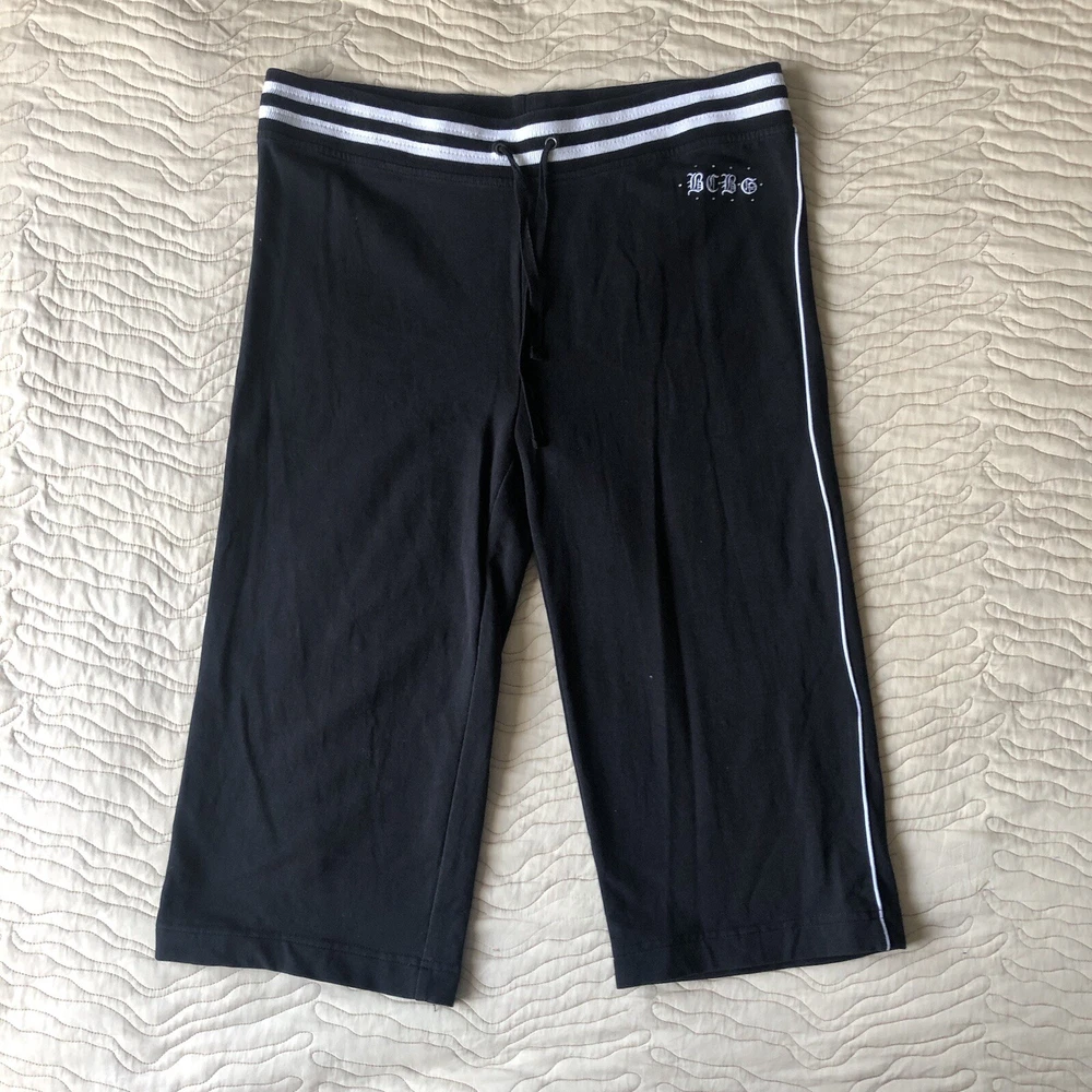 Size: XL Waist: 17 inches Rise: 10.5 inches Inseam: 18 inches Length: 28 inches Add some sparkle to your casual wear with these BCBG Y2K Rhinestone Embroidery Capri Sweatpants. The black cotton pants feature wide-leg style and an elastic waist for comfortable fit. The mid-rise pants are perfect for any occasion and can be worn with a variety of tops. The rhinestone accents on the pants add a touch of glamour to your outfit. These pants are available in XL size with a waist size of 34 inches and are suitable for regular fit. Max Azria is the brand behind these stylish pants.