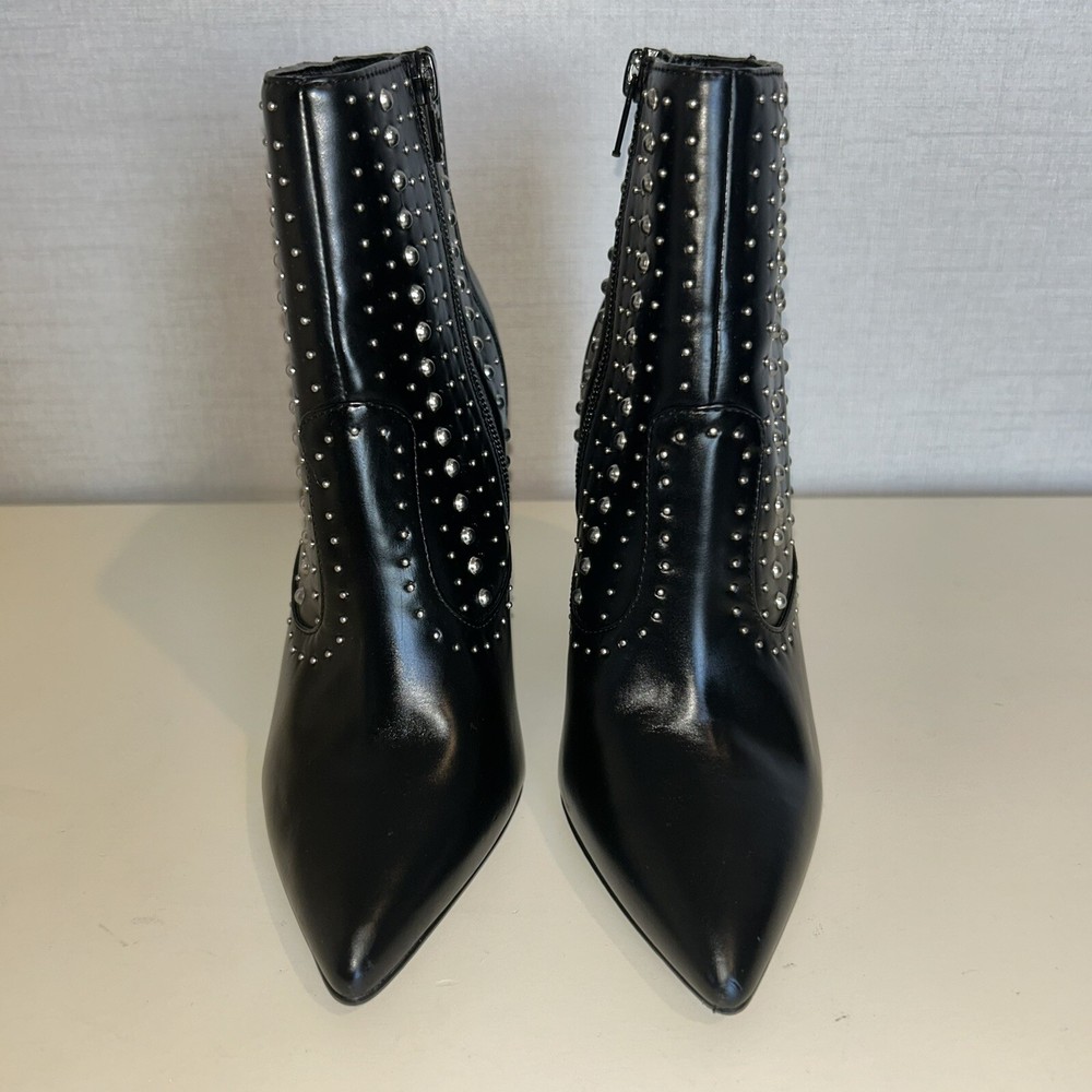 Elevate your style with these stunning BCBGeneration boots in black. With a pointed toe and high block heel, these ankle booties are perfect for any occasion, from casual to formal. The studded accents add a touch of glamour to the faux leather upper material, making them a great addition to your wardrobe. These boots are designed for women and come in size 5B. They are perfect for parties, cocktail events, or simply for everyday wear. The Boots character adds a touch of sophistication to your outfit, while the Comfort and Style category ensures that you will feel confident and comfortable all day long. Don't miss out on these must-have booties from BCBGeneration.