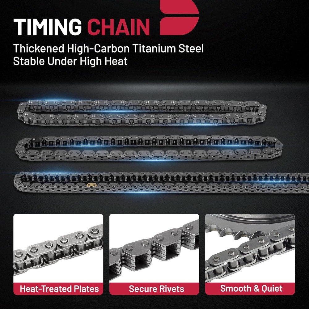 BDFHYK Engine Timing Chain Kit with Sprocket Tensioner Compatible with Chevy Compatible with GMC Fit for 2007-2017 Express Silverado Tahoe Sierra Yukon Suburban Camaro H3 CTS, 4.8L 5.3L 6.0L 6.2L V8 BDFHYK Engine Timing Chain Kit with Sprocket Tensioner Compatible with Chevy Compatible with GMC Fit for 2007-2017 Express Silverado Tahoe Sierra Yukon Suburban Camaro H3 CTS, 4.8L 5.3L 6.0L 6.2L V8 FREE AND FAST SHIPPING! About this item [Compatible Vehicles]: Compatible with Chevy 2006-2017 Silverado 1500, Impala, Avalanche, Camaro, Caprice, Corvette, Colorado, Express 1500 2500 3500, Tahoe, Trailblazer; Compatible with GMC 2007-2011 Canyon, Envoy, Savana, Sierra 1500, Yukon; Compatible with Cadillac 2009-2015 CTS; Compatible with Buick 2008-2009 LaCrosse; Compatible with Hummer 2008-2009 H3; Compatible with Pontiac 2008-2009 Grand Prix, G8; Compatible with Saab 2007-2009 9-7x. See pictures for more details. [Part Numbers]: This engine timing chain kit replacement corresponds to the following OE part numbers: 33SRH60S, 3SRH60, 12646386, 12626407, 12585997, 12556582, 12591689, C-3227, TS13227, T66092, S894T, G55894, S894, S827, 9-4205, 9-5490, 94205, 95490. [Package Includes]: 1 x Timing Chain(60 Links), 1 x Camshaft Sprocket, 1 x Crankshaft Sprocket, 1 x Timing Chain Guide. [Feature]: This timing chain kit is precision-built to deliver long-lasting performance under intense heat and pressure. Each component is thoroughly tested to meet or exceed OEM standards, ensuring optimal reliability and fit. [Important Notice]: Please check your vehicle's year, make, model and engine type via the "Amazon Fitment Check" in the upper left corner to confirm compatibility. Product We offer a 30-Day Return Policy on items which you are not completely satisfied with. You have the option for a full-refund or an exchange of the item. No returns are available on items shipped outside of the US . Shipping We offer Free Shipping to the US and ship within 2 business days of payment, usually sooner. We use UPS express shipping. That's why your products are usually delivered within 3 days . Contact We try our very best to make sure every customer is completely satisfied. If there's a problem , message us! We're happy to help. 24/7 live chat available.