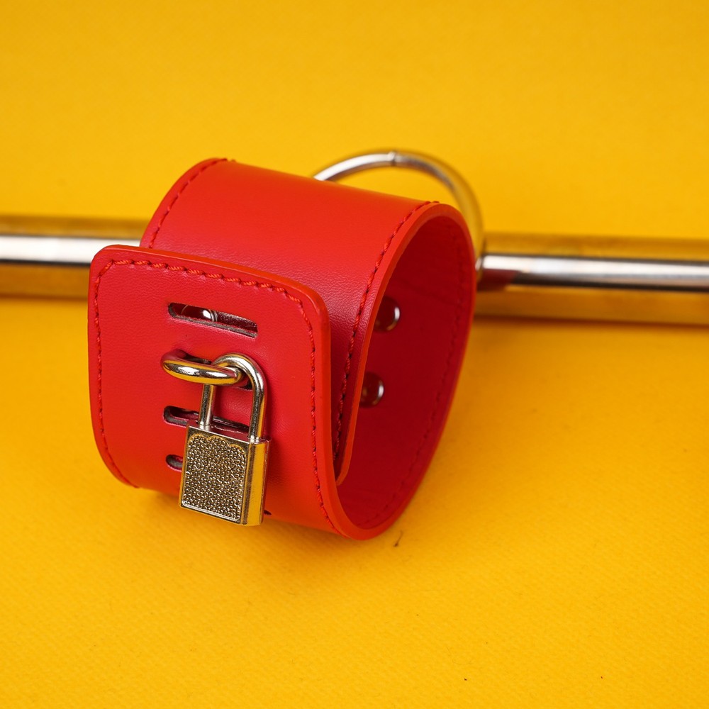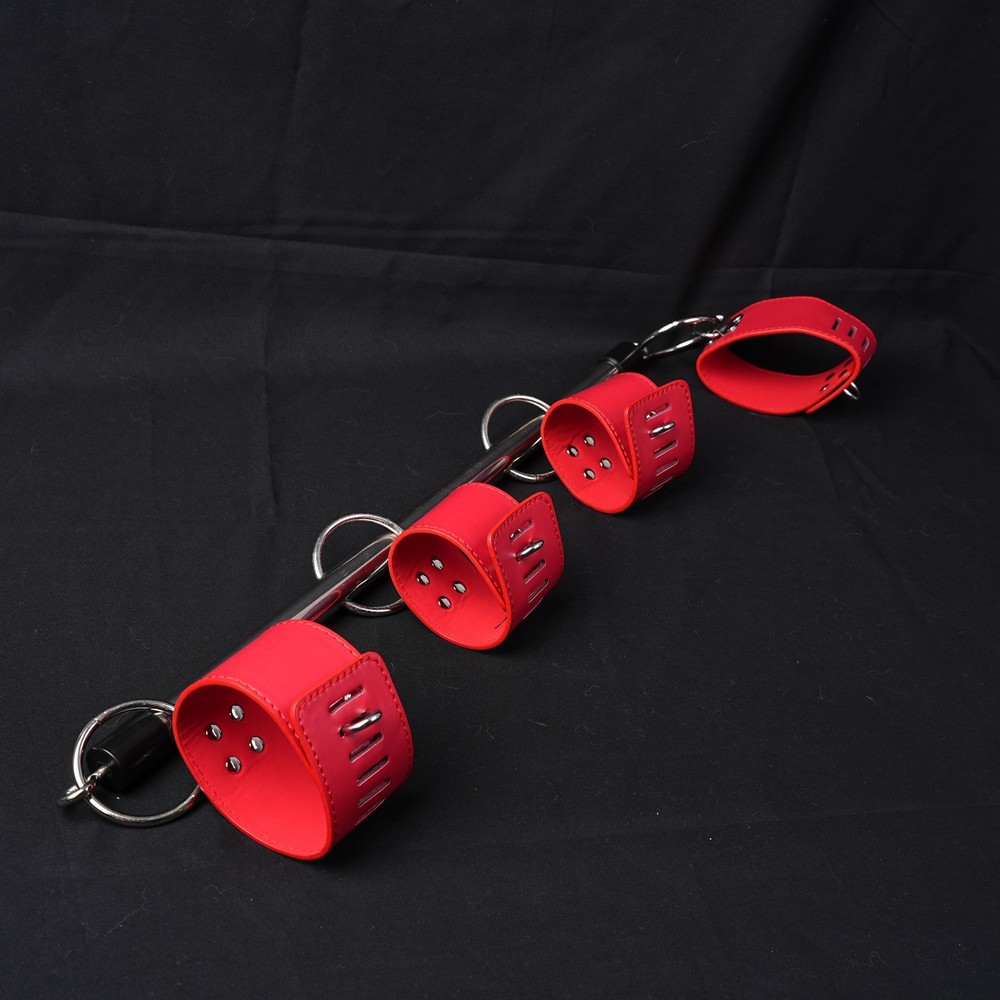 Features: Condition: 100% Brand new and high quality Material: PU leather + Metal Color: Black/Red bar Length: 55cm/21.65inches Handcuff: 25cm * 5.5cm Ankle cuff: 30cm * 5.5cm Package Included: 1pcs Spreader Bar with handcuff& anklecuff Note: The real color of the item may be slightly different from the pictures shown on website caused by many factors such as brightness of your monitor and light brightness.
