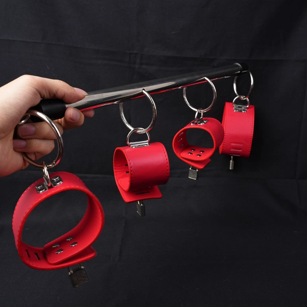 $ 5.75Metal Open Leg Bar PU Leather Handcuffs Ankle Cuffs Restraints Bondage Set BDSM