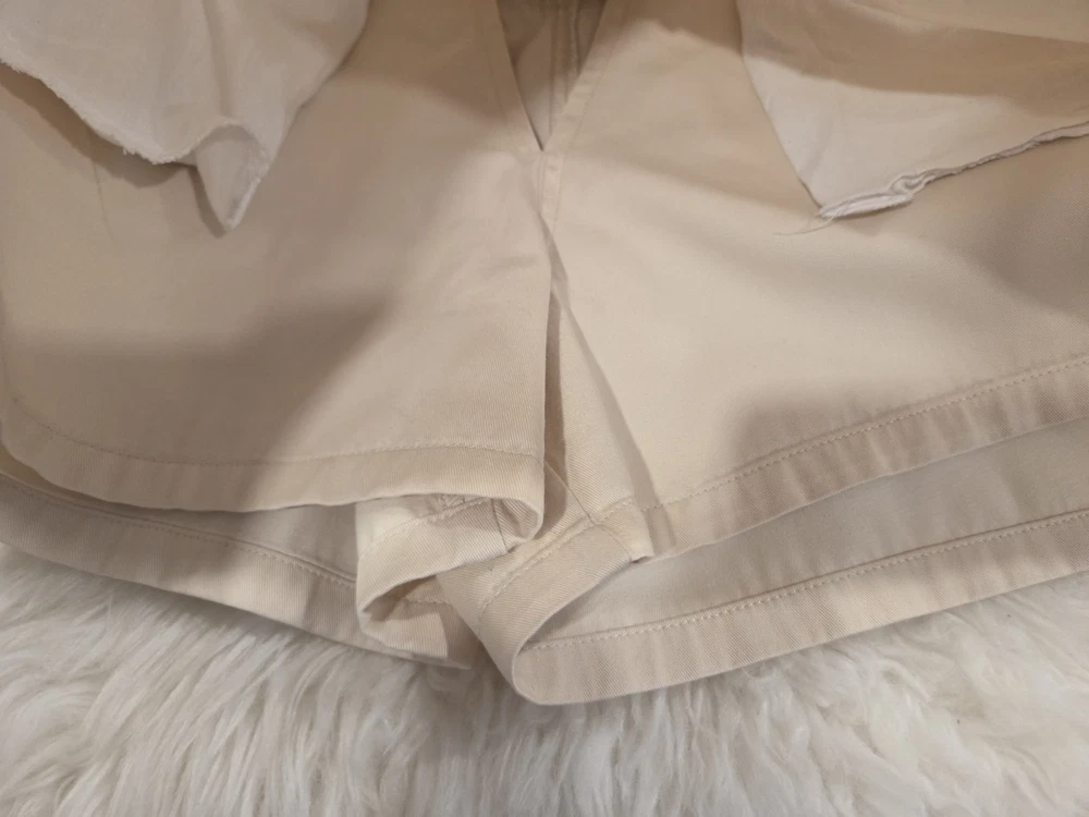 Measurements (approximately) : Waist : 14 1/2 inches. Waist to hem : 13 1/2 inches. Shorts inseam : 4 inches. 100% Cotton.