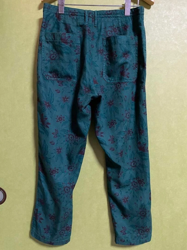 BEAMS HEART Floral Pants Straight Casual Cotton Linen Pockets Men Size S Used
