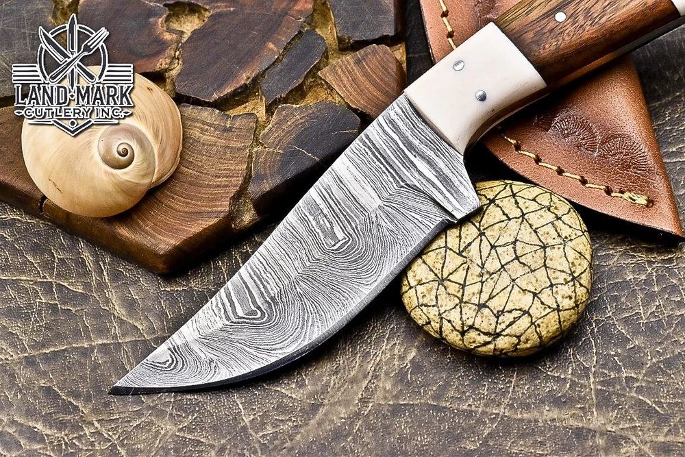 Custom Hand Made DAMASCUS STEEL HUNTING KNIFE WITH WOOD & SHEET HANDLE We offer a shipping discount for More then one purchased . And discount will be apply on combine invoice, Discount will not apply on separate payment. ITEM DETAILS OVER ALL LENGTH 8.0 inches long (Approx) HANDLE LENGTH 4.0 inches long (Approx) BLADE LENGTH 4.0 inches long (Approx) BLADE HARDNESS 58-60 HRC Which Holds The Sharp Edge For Long Time. HANDLE WOOD & SHEET COVER LEATHER SHEATH This Awesome custom made KNIFE has a nice hand forged with the combination of 4340 & 1080 steel. HOW OUR DAMASCUS IS MADE: All our Damascus is real and not just an acid etch. Damascus is a mixture of 1080HC and 4340 nickel carbon. You heat them up together and then fold the bar over and over to get the desired layers, ours are 396 layers. Then you burn the blade in acid, and it turns the nickel satin color and the high carbon turns blackish gray. This is how the layers are exposed to show the layers of the new steel created coined "Damascus". All Damascus is acid etched to show the layers. If you high polish the metal it will be shinny satin like all steels. Only after you burn the sides of the blade with acid do you see the layers of the two steels. Makes sense? After we make our knives we high polish the handles and put an edge on the blade. The high polishing buffs off the acid burned layer of the handle, and the blade edge is sharpened and the acid burned edge becomes satin. You can re-burn the tang of the blade near the handles and the edge of the blade and it will show the layers once more. All our knives are hand made, durable and unique ***** YOU WILL RECEIVED THE SAME KNIFE Qality Standards Our Damascus blades are made from high quality non-stainless steels which rival or exceed any Damascus blade made from the 10 series with 4340. Our Damascus combination has taken years to perfect and has been tested under a variety of application which will offer professional performance in categories of toughness, strength (lateral stress) and edge honing and holding ability. In a 5 spot Rockwell test our blades will average near or close to 58 which offers a perfect balances between its toughness and strength.Our blades due to carbon content need to be regularly treated with wax and/or 3 in 1 oil to maintain its superior quality. Questions if you have any question feel free to send us message we aim to answer all questions within 24 hours Feedback If you are not satisfied with our service please contact us before leaving any negative or natural feedback. We will resolve all issues as quickly as possible. Disclaimer We are not responsible for any injuries associated with the use of our tools. Our products are intended for legal use only by responsible buyers. Therefore, we will not sell our products to anyone under the age of 18. Before bidding please check your country laws as some countries Custom don't allow this. If your purchase is held by Custom Authorities in your country/State we will not be responsible for that and no refund will be issued Shipping We offer a 20% shipping discount for More then one purchased . And discount will be apply on combine invoice, Discount will not apply on separate payment We ship within 24 hours after receiving complete payment but this can be delayed due to week ends or Governments and Religious Festivals . . This is beyond our control and we apologize for this inconvenience. Precautions Our Tools are very sharp so open and use them very carefully We are not responsible for any injuries associated with the use of our tools Tips to Care knife 1. NEVER STORE YOUR KNIFE FOR LONG TIME IN LEATHER SHEATH. 2. LEATHER CAN ABSORB WATER, WHICH WILL RUST THE KNIFE. 3. ALWAYS CLEAN THE BLADE AFTER USING WITH OIL OR WAX
