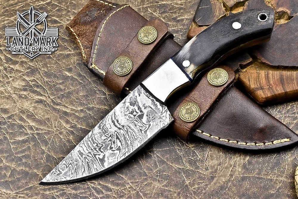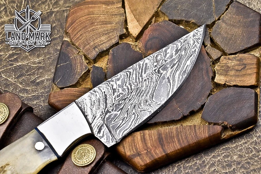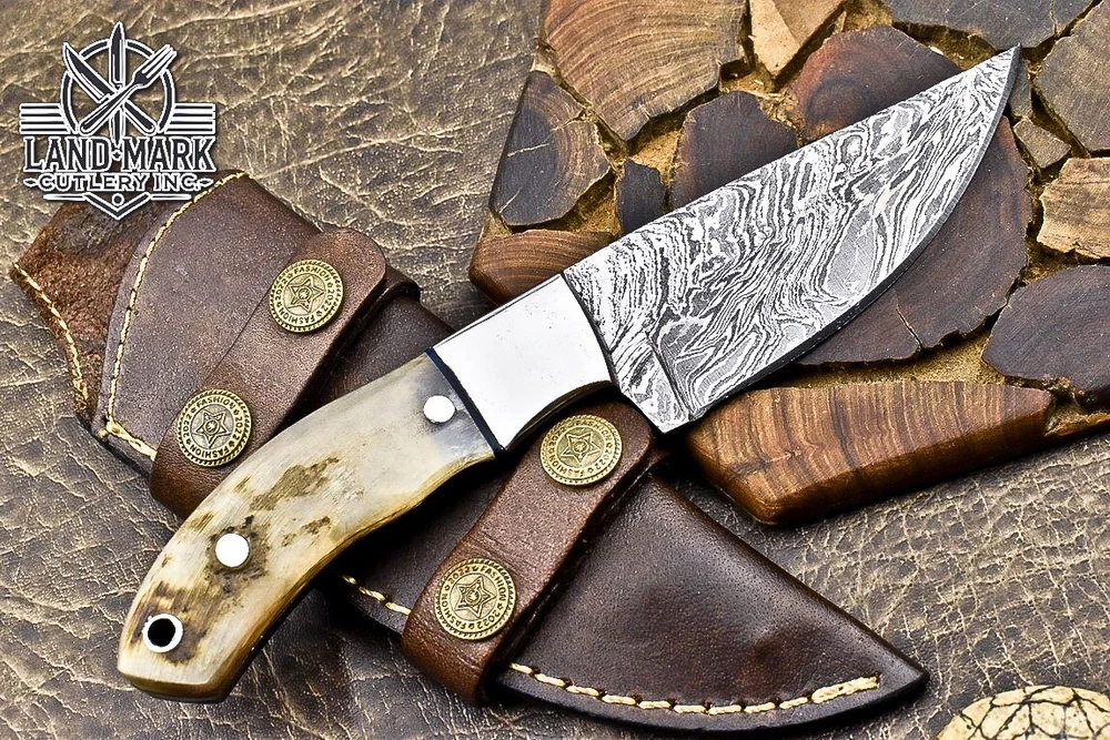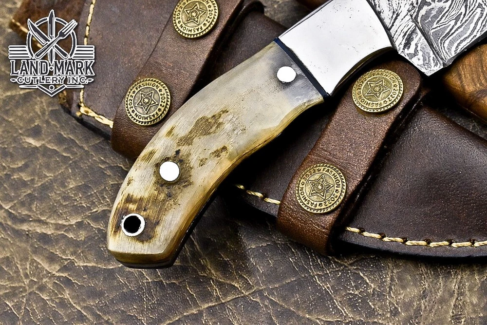 BEAUTIFUL CUSTOM DAMASCUS HANDE MADE HUNTING SKINER KNIFE WITH RAM HORN HANDLE