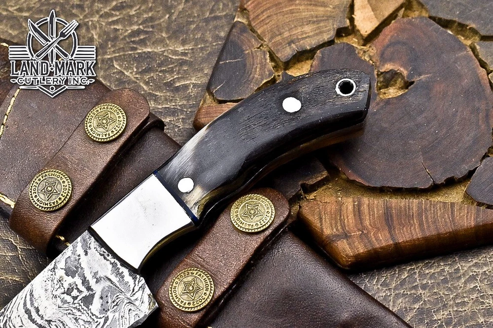 Custom Hand Made DAMASCUS STEEL HUNTING KNIFE WITH RAM HORN HANDLE We offer a shipping discount for More then one purchased . And discount will be apply on combine invoice, Discount will not apply on separate payment. ITEM DETAILS OVER ALL LENGTH 8.0 inches long (Approx) HANDLE LENGTH 4.0 inches long (Approx) BLADE LENGTH 4.0 inches long (Approx) BLADE HARDNESS 58-60 HRC Which Holds The Sharp Edge For Long Time. HANDLE RAM HORN COVER LEATHER SHEATH This Awesome custom made KNIFE has a nice hand forged with the combination of 4340 & 1080 steel. HOW OUR DAMASCUS IS MADE: All our Damascus is real and not just an acid etch. Damascus is a mixture of 1080HC and 4340 nickel carbon. You heat them up together and then fold the bar over and over to get the desired layers, ours are 396 layers. Then you burn the blade in acid, and it turns the nickel satin color and the high carbon turns blackish gray. This is how the layers are exposed to show the layers of the new steel created coined "Damascus". All Damascus is acid etched to show the layers. If you high polish the metal it will be shinny satin like all steels. Only after you burn the sides of the blade with acid do you see the layers of the two steels. Makes sense? After we make our knives we high polish the handles and put an edge on the blade. The high polishing buffs off the acid burned layer of the handle, and the blade edge is sharpened and the acid burned edge becomes satin. You can re-burn the tang of the blade near the handles and the edge of the blade and it will show the layers once more. All our knives are hand made, durable and unique ***** YOU WILL RECEIVED THE SAME KNIFE Qality Standards Our Damascus blades are made from high quality non-stainless steels which rival or exceed any Damascus blade made from the 10 series with 4340. Our Damascus combination has taken years to perfect and has been tested under a variety of application which will offer professional performance in categories of toughness, strength (lateral stress) and edge honing and holding ability. In a 5 spot Rockwell test our blades will average near or close to 58 which offers a perfect balances between its toughness and strength.Our blades due to carbon content need to be regularly treated with wax and/or 3 in 1 oil to maintain its superior quality. Questions if you have any question feel free to send us message we aim to answer all questions within 24 hours Feedback If you are not satisfied with our service please contact us before leaving any negative or natural feedback. We will resolve all issues as quickly as possible. Disclaimer We are not responsible for any injuries associated with the use of our tools. Our products are intended for legal use only by responsible buyers. Therefore, we will not sell our products to anyone under the age of 18. Before bidding please check your country laws as some countries Custom don't allow this. If your purchase is held by Custom Authorities in your country/State we will not be responsible for that and no refund will be issued Shipping We offer a 20% shipping discount for More then one purchased . And discount will be apply on combine invoice, Discount will not apply on separate payment We ship within 24 hours after receiving complete payment but this can be delayed due to week ends or Governments and Religious Festivals . . This is beyond our control and we apologize for this inconvenience. Precautions Our Tools are very sharp so open and use them very carefully We are not responsible for any injuries associated with the use of our tools Tips to Care knife 1. NEVER STORE YOUR KNIFE FOR LONG TIME IN LEATHER SHEATH. 2. LEATHER CAN ABSORB WATER, WHICH WILL RUST THE KNIFE. 3. ALWAYS CLEAN THE BLADE AFTER USING WITH OIL OR WAX