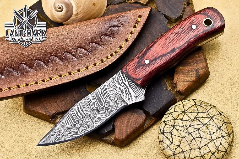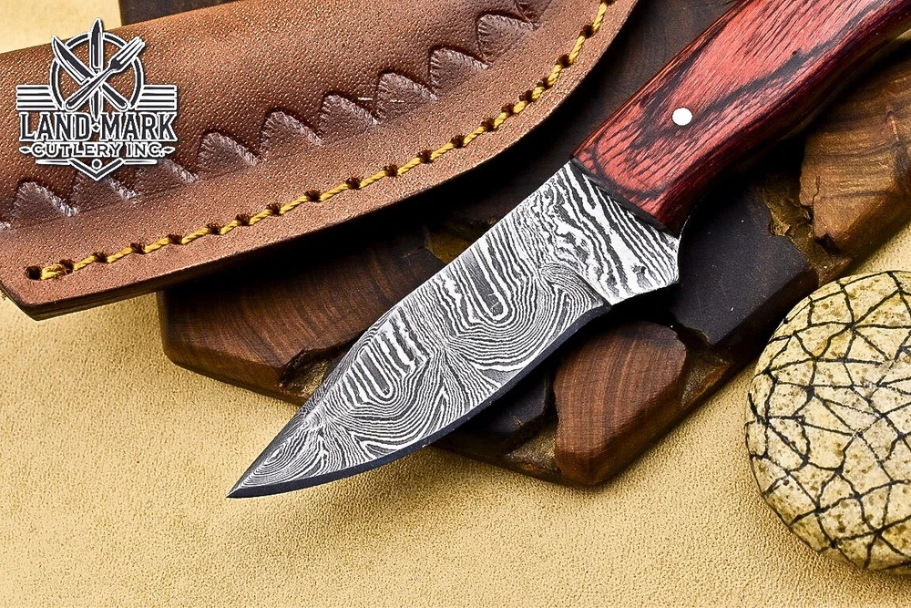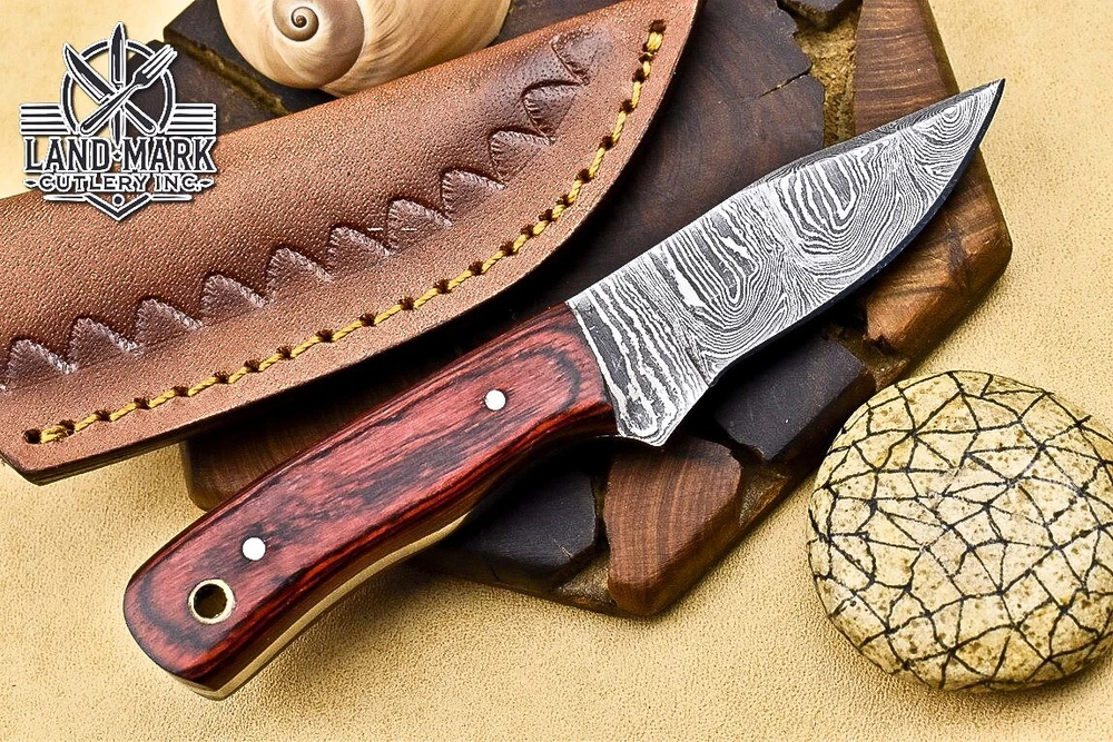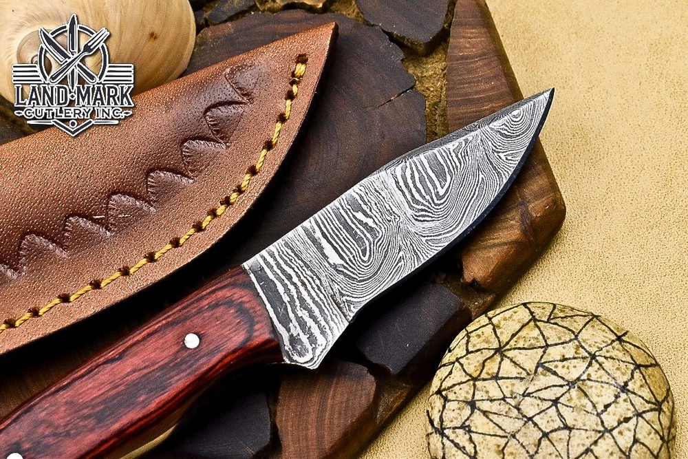BEAUTIFUL CUSTOM DAMASCUS HANDE MADE HUNTING SKINNER KNIFE HARD WOOD HANDLE