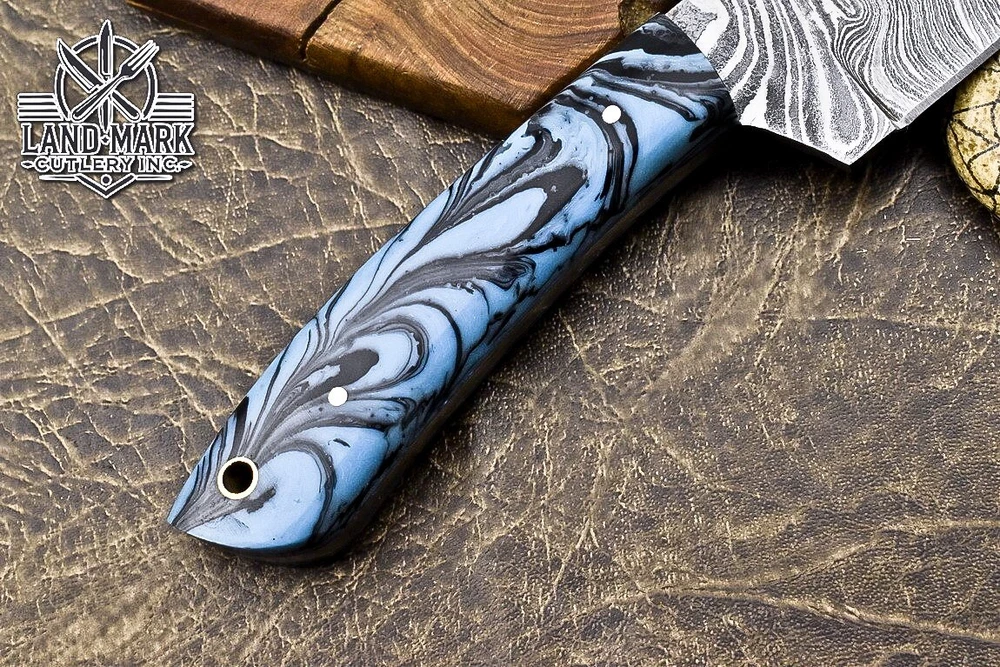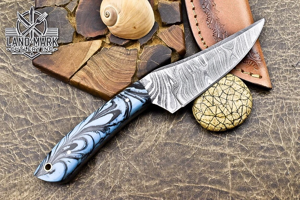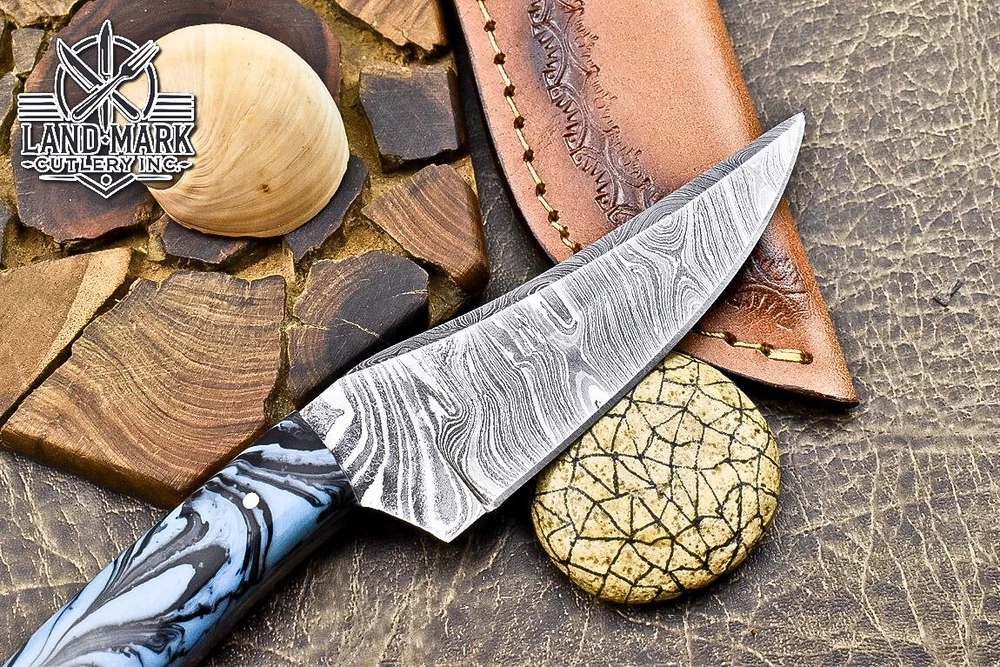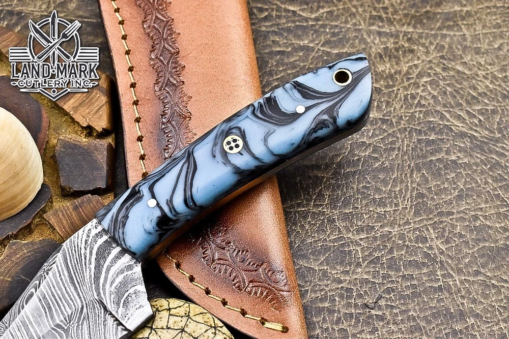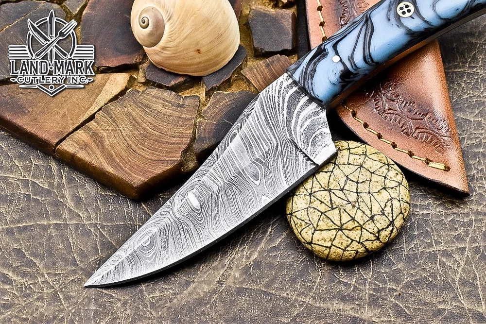Blade Material: Damascus Steel Country/Region of Manufacture: Canada Blade Length: 4 INCH Tang: Half Type: Wild Life, Chef, Dagger Boot Knife, Sports, Dagger, Gift, Damascus Knife, Damascus Steel, Hand Made, Boot, Bowie, Bowie Knife, Combat, Everyday Carry, Hunting, Survival, Throwing Handmade: Yes Brand: SOLINGEN KNIVES Original/Reproduction: Original Year: 2025 Features: Sheath Included Handle Material: RESIN Blade Color: Silver Blade Edge: Plain Blade Type: Drop Point Dexterity: Ambidextrous