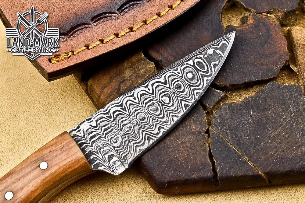 Custom Hand Made D2 STEEL HUNTING KNIFE WITH OLIVE WOOD HANDLE We offer a shipping discount for More then one purchased . And discount will be apply on combine invoice, Discount will not apply on separate payment. ITEM DETAILS OVER ALL LENGTH 3.0 inches long (Approx) HANDLE LENGTH 1.5 inches long (Approx) BLADE LENGTH 1.5 inches long (Approx) BLADE HARDNESS 58-60 HRC Which Holds The Sharp Edge For Long Time. HANDLE OLIVE WOOD COVER LEATHER SHEATH This Awesome custom made KNIFE has a nice hand forged with the combination of 4340 & 1080 steel. HOW OUR DAMASCUS IS MADE: All our Damascus is real and not just an acid etch. Damascus is a mixture of 1080HC and 4340 nickel carbon. You heat them up together and then fold the bar over and over to get the desired layers, ours are 396 layers. Then you burn the blade in acid, and it turns the nickel satin color and the high carbon turns blackish gray. This is how the layers are exposed to show the layers of the new steel created coined "Damascus". All Damascus is acid etched to show the layers. If you high polish the metal it will be shinny satin like all steels. Only after you burn the sides of the blade with acid do you see the layers of the two steels. Makes sense? After we make our knives we high polish the handles and put an edge on the blade. The high polishing buffs off the acid burned layer of the handle, and the blade edge is sharpened and the acid burned edge becomes satin. You can re-burn the tang of the blade near the handles and the edge of the blade and it will show the layers once more. All our knives are hand made, durable and unique ***** YOU WILL RECEIVED THE SAME KNIFE Qality Standards Our Damascus blades are made from high quality non-stainless steels which rival or exceed any Damascus blade made from the 10 series with 4340. Our Damascus combination has taken years to perfect and has been tested under a variety of application which will offer professional performance in categories of toughness, strength (lateral stress) and edge honing and holding ability. In a 5 spot Rockwell test our blades will average near or close to 58 which offers a perfect balances between its toughness and strength.Our blades due to carbon content need to be regularly treated with wax and/or 3 in 1 oil to maintain its superior quality. Questions if you have any question feel free to send us message we aim to answer all questions within 24 hours Feedback If you are not satisfied with our service please contact us before leaving any negative or natural feedback. We will resolve all issues as quickly as possible. Disclaimer We are not responsible for any injuries associated with the use of our tools. Our products are intended for legal use only by responsible buyers. Therefore, we will not sell our products to anyone under the age of 18. Before bidding please check your country laws as some countries Custom don't allow this. If your purchase is held by Custom Authorities in your country/State we will not be responsible for that and no refund will be issued Shipping We offer a 20% shipping discount for More then one purchased . And discount will be apply on combine invoice, Discount will not apply on separate payment We ship within 24 hours after receiving complete payment but this can be delayed due to week ends or Governments and Religious Festivals . . This is beyond our control and we apologize for this inconvenience. Precautions Our Tools are very sharp so open and use them very carefully We are not responsible for any injuries associated with the use of our tools Tips to Care knife 1. NEVER STORE YOUR KNIFE FOR LONG TIME IN LEATHER SHEATH. 2. LEATHER CAN ABSORB WATER, WHICH WILL RUST THE KNIFE. 3. ALWAYS CLEAN THE BLADE AFTER USING WITH OIL OR WAX