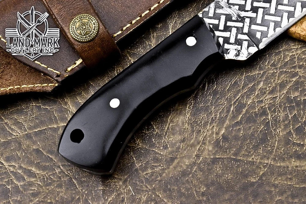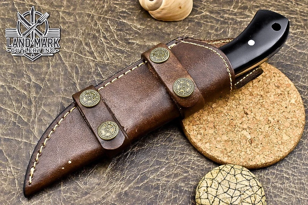 Custom Hand Made DAMASCUS STEEL HUNTING KNIFE WITH BLACK HANDLE We offer a shipping discount for More then one purchased . And discount will be apply on combine invoice, Discount will not apply on separate payment. ITEM DETAILS OVER ALL LENGTH 8.0 inches long (Approx) HANDLE LENGTH 4.0 inches long (Approx) BLADE LENGTH 4.0 inches long (Approx) BLADE HARDNESS 58-60 HRC Which Holds The Sharp Edge For Long Time. HANDLE BLACK COVER LEATHER SHEATH This Awesome custom made KNIFE has a nice hand forged with the combination of 4340 & 1080 steel. HOW OUR DAMASCUS IS MADE: All our Damascus is real and not just an acid etch. Damascus is a mixture of 1080HC and 4340 nickel carbon. You heat them up together and then fold the bar over and over to get the desired layers, ours are 396 layers. Then you burn the blade in acid, and it turns the nickel satin color and the high carbon turns blackish gray. This is how the layers are exposed to show the layers of the new steel created coined "Damascus". All Damascus is acid etched to show the layers. If you high polish the metal it will be shinny satin like all steels. Only after you burn the sides of the blade with acid do you see the layers of the two steels. Makes sense? After we make our knives we high polish the handles and put an edge on the blade. The high polishing buffs off the acid burned layer of the handle, and the blade edge is sharpened and the acid burned edge becomes satin. You can re-burn the tang of the blade near the handles and the edge of the blade and it will show the layers once more. All our knives are hand made, durable and unique ***** YOU WILL RECEIVED THE SAME KNIFE Qality Standards Our Damascus blades are made from high quality non-stainless steels which rival or exceed any Damascus blade made from the 10 series with 4340. Our Damascus combination has taken years to perfect and has been tested under a variety of application which will offer professional performance in categories of toughness, strength (lateral stress) and edge honing and holding ability. In a 5 spot Rockwell test our blades will average near or close to 58 which offers a perfect balances between its toughness and strength.Our blades due to carbon content need to be regularly treated with wax and/or 3 in 1 oil to maintain its superior quality. Questions if you have any question feel free to send us message we aim to answer all questions within 24 hours Feedback If you are not satisfied with our service please contact us before leaving any negative or natural feedback. We will resolve all issues as quickly as possible. Disclaimer We are not responsible for any injuries associated with the use of our tools. Our products are intended for legal use only by responsible buyers. Therefore, we will not sell our products to anyone under the age of 18. Before bidding please check your country laws as some countries Custom don't allow this. If your purchase is held by Custom Authorities in your country/State we will not be responsible for that and no refund will be issued Shipping We offer a 20% shipping discount for More then one purchased . And discount will be apply on combine invoice, Discount will not apply on separate payment We ship within 24 hours after receiving complete payment but this can be delayed due to week ends or Governments and Religious Festivals . . This is beyond our control and we apologize for this inconvenience. Precautions Our Tools are very sharp so open and use them very carefully We are not responsible for any injuries associated with the use of our tools Tips to Care knife 1. NEVER STORE YOUR KNIFE FOR LONG TIME IN LEATHER SHEATH. 2. LEATHER CAN ABSORB WATER, WHICH WILL RUST THE KNIFE. 3. ALWAYS CLEAN THE BLADE AFTER USING WITH OIL OR WAX