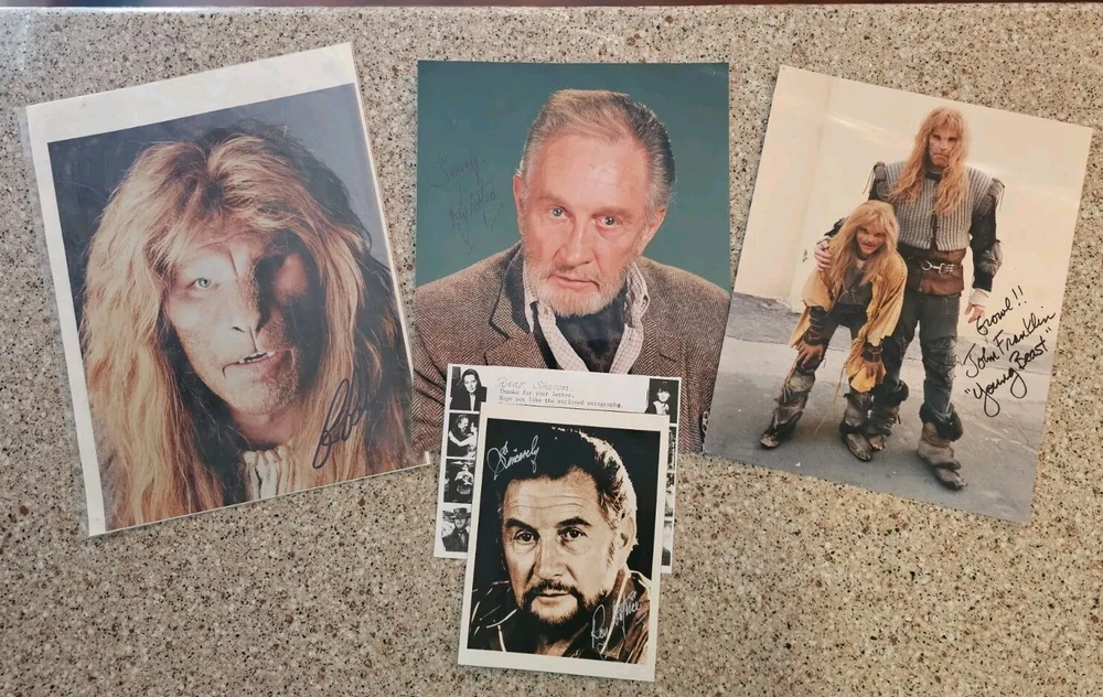 This lot includes a stunning TV photo of the beloved Beauty and the Beast cast, featuring Ron Perlman. The photo is perfect for any fan of the science fiction and horror genre. It is a great addition to any collection of sci-fi collectibles, and would make a fantastic calendar or magazine display. The photo is from the United States and has not been modified in any way. It is not a vintage item, but it is still a unique and valuable piece of memorabilia. Whether you are a collector or just a fan of the show, this lot is a must-have. Huge Beauty & The Beast Lot. CBS memorabilia promotions, signed photos, sealed calendars, magazine clippings, photos, Beauty & The Beast magazine, art and more!! Ron Perlman, John Franklin and Roy Dotrice (x2) autographs! See pics and ask questions!