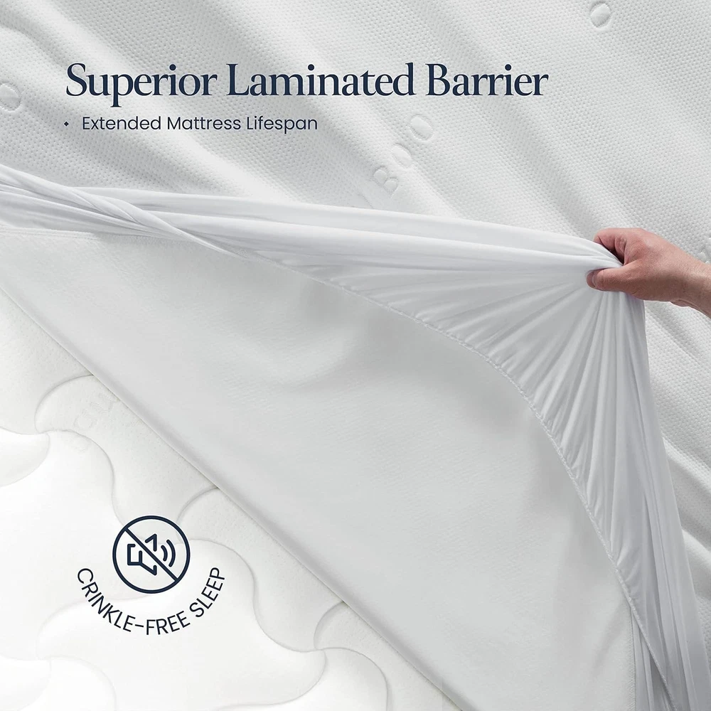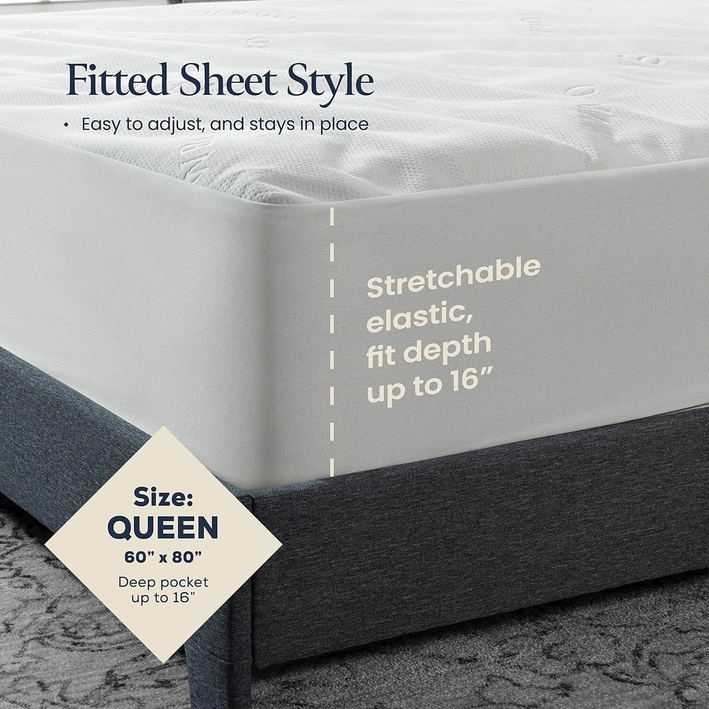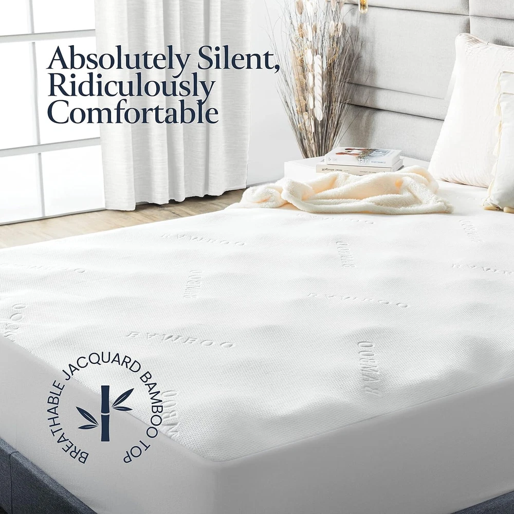 BELADOR Waterproof Mattress Protector Queen 3D Air Fabric BAMBOO Mattress Protec Color: White Size: Queen Fabric Type: Top: 100% Viscose from Bamboo, Lining: 100% Polyurethane Waterproofing Special Feature Waterproof OEKO-TEX STANDARD 100 - Certified & tested for harmful substances. 100% Bambo Top – Our mattress cover is crafted of natural bamboo fabric, and will keep your mattress Hygienic, while you relax in the utmost comfort of the softest cotton Breathable & Noiseless – Woven with highly breathable fabric, the protector wicks away sweat and condensation, perfect for cold or warm nights. The fine bamboo construction ensures there’s no rustling or crinkling as you shift on it. Enjoy a Noise-Free rest. Waterproof Top - Backed with a superior TPU Lamination. Our cover will protect the top of your mattress against Urine, Fluids, and Perspiration, keeping your expensive mattress in pristine condition. (note: waterproof top only) Effortless Caring – The elastic fitted sheet is super easy to put-on and adjust, making sure that the mattress protector stays in place and does not slip or bunch up. Your mattress will be completely covered. Washing Instructions - Wash before first use. Machine wash & tumble dry on lowest heat setting. Do not use bleach or fabric softener. Do not Iron. Do not dry clean. Extra tip: Wash and tumble dry with linen to dry quicker. Return Policy: We offer a 30 day return policy from the receiving date. Please contact us for a Free Return Label. Please use our return label so it will go back to our supplier and we can do a refund or replacement afterwards. Feedback: Your satisfaction is very important to us! If you have any problem with your order, please contact us and we will do our very best to make you satisfied. As long as you are happy with your purchase, please leave a positive feedback for us. We will always leave you a positive feedback in return. If you have any problem with your purchase, please do not leave a negative feedback. Please Contact us ... and your issue will be solved quickly and positively We are a small family-owned business trying to make a living, not a huge company that does not care ... We will ALWAYS do our best for you!