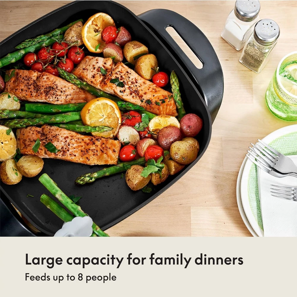 Special Feature Removable Heating Probe, Adjustable Temperature Control Color Copper Material Cast Aluminum, Ceramic Non-Stick Coating Reinforced with Titanium Brand BELLA Product Dimensions 12.2"D x 16.73"W x 7.87"H Wattage 1200 watts Item Weight 4.74 Pounds Included Components Electric Skillet Style Ceramic Titanium Voltage 127 See more About this item HUSSLE-FREE COOKING: From breakfast to dinner and everything in between, this electric pot is a Must-Have for any cook. With a durable cast aluminum base and an easy-to-clean tempered glass lid, this handy pan is perfect for family meals or entertaining guests FOR FAMILIES: Roast, fry, steam or use it as a buffet server... with BELLA's electric pot, the possibilities are endless! Whether you're making a family favorite or trying new recipes, our large skillet can do it all, like omelets, risottos, paellas and more ULTRA DURABLE: This electric griddle pan is 8 times more durable than standard nonstick coatings! Plus, it cooks up to 30% faster than other coated skillets. Our electric skillets are reinforced with titanium for strength, durability and scratch resistance ADJUSTABLE TEMPERATURE: No more guesswork or burnt food. With our electric frying pan, you'll always be in control. The removable probe with easy-to-use dial lets you adjust the temperature with accuracy to create perfectly delicious dishes every time EASY CLEAN-UP: No more scrubbing and scraping! The titanium ceramic electric griddle is fully immersible and can simply be rinsed with warm water and soap. Finally, the electric pan for cooking is PTFE & PFOA free, making it healthy and eco-friendly
