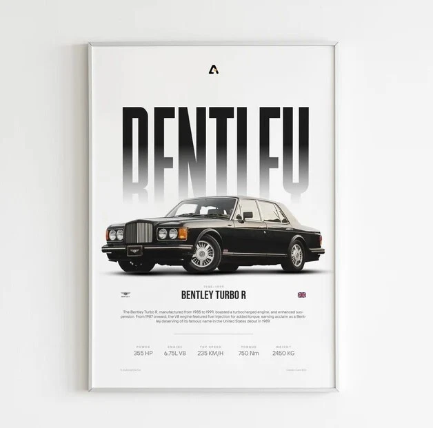 BENTLEY TURBO R - Car Poster | Old School Art | Vintage Bentley | Car Wall Art