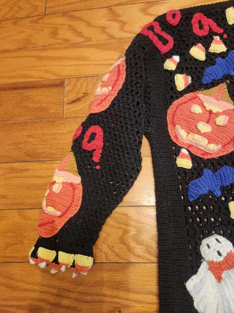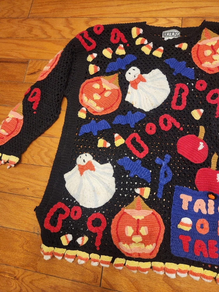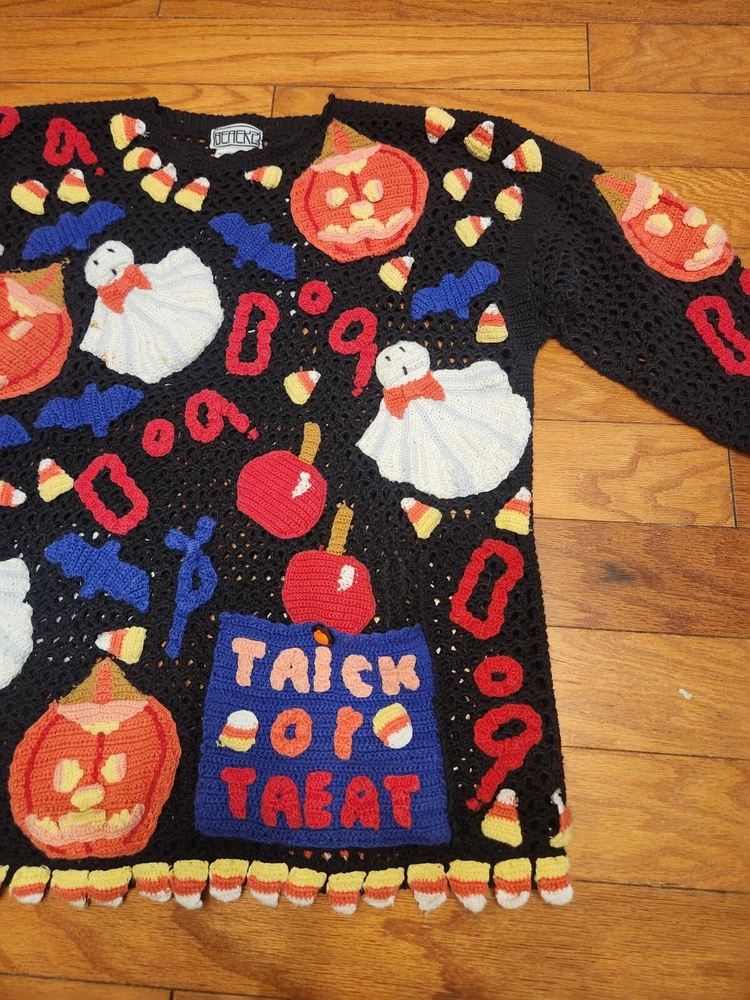 HomeBEREK Sweater Crochet M L Double Sided Halloween Embroidered RARE Vintage
