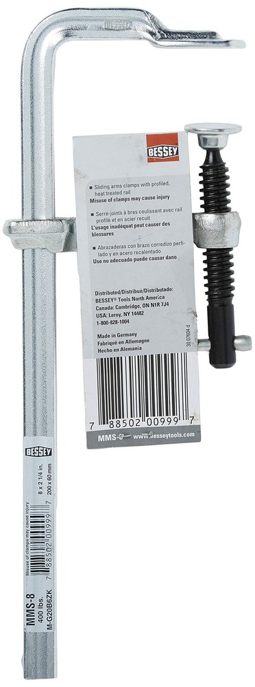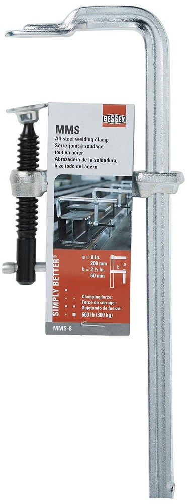 Standard swivel pressure pads built for solid dependable performance Clamp rail and fixed jaw are created from a single piece of cold drawn steel After bending and forming of the fixed jaw the rails are heat treated for maximum strength Drop forged, electro-galvanized steel sliding arm Steel sliding T-bar handle Does the work of c-clamps … but does it 9x faster