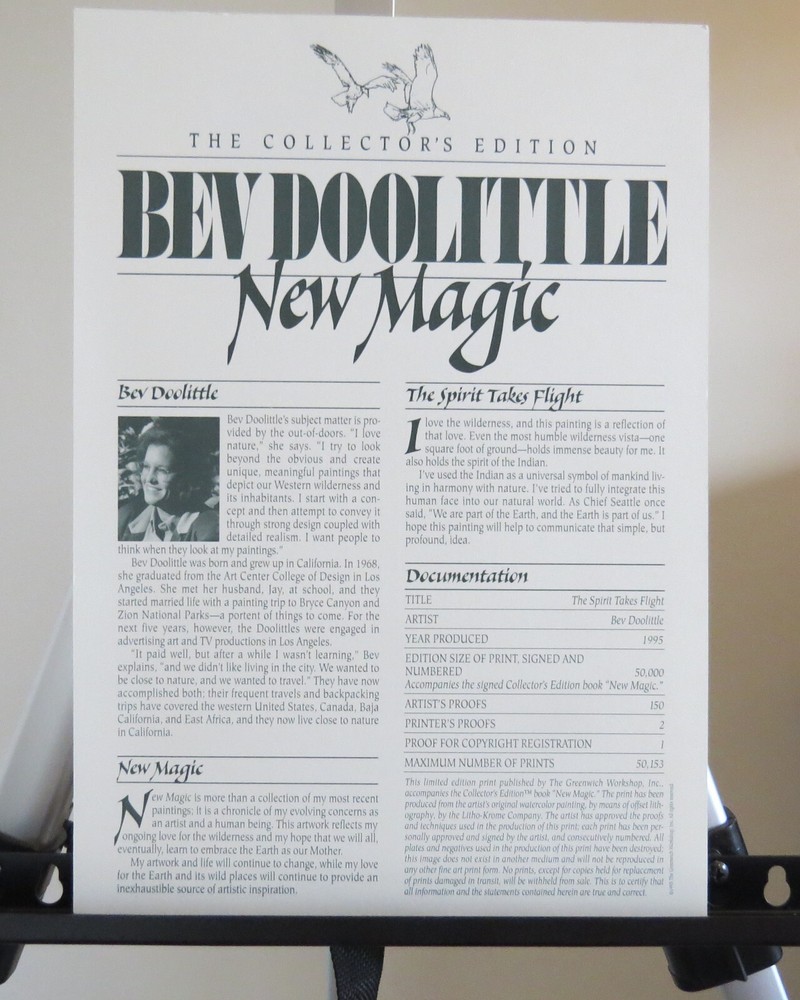 Adorn your walls with this stunning lithograph print by Bev Doolittle, showcasing the spirit of the Indian. The piece is expertly framed and comes with a certificate of authenticity, ensuring its original produced, and this particular piece is numbered 13331. The artwork is inspired by Indian lore and features intricate details and vibrant colors. It is perfect for collectors of art prints or those who appreciate the beauty and complexity of Native American culture. The piece comes with a book that provides insight into the artist's inspiration and creation process. Add this unique and beautiful piece to your collection today.