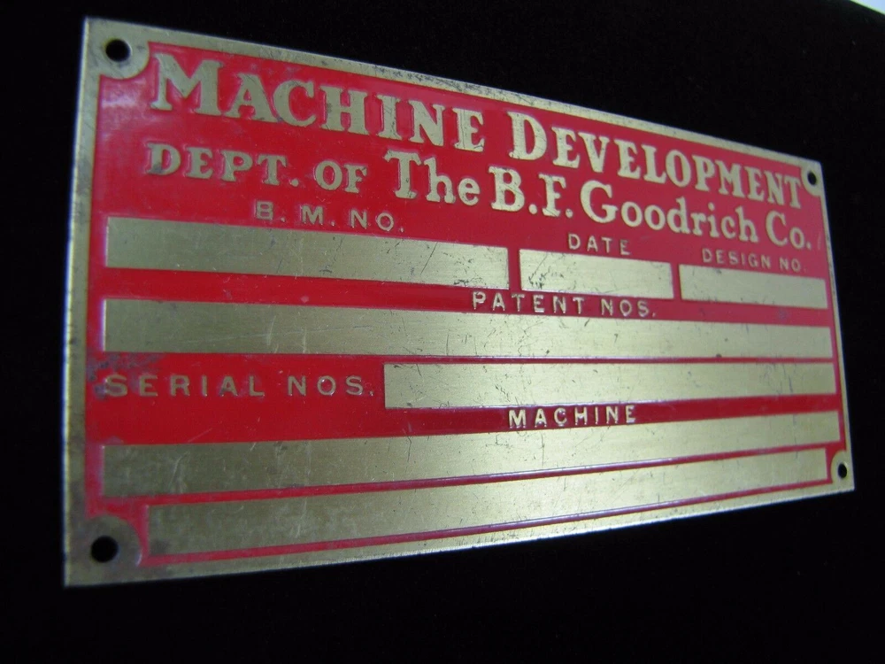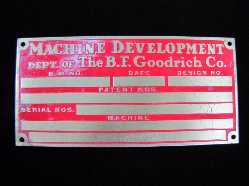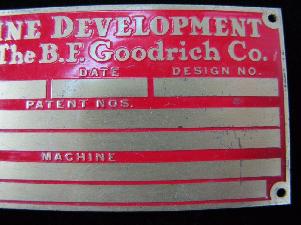 -BFG Tire Company Piece- Machine Development Dept of The B.F. Goodrich Co. Old Brass Nameplate Small Sign Equipment Tag please view all pictures for more information shows some wear with age noted measures approximately 2 1/8" by 4 3/8" check our store for more advertising items available for private inspection by appointment please view all pictures for more information and to judge condition for yourself. wear with age and use. please ask all questions before end of auction. available for private inspection. please feel free to contact us with any pertinent questions pertaining to the item. follow us and add us to your favorite sellers, we are always adding new items in our store. thank you for looking -dr24.dp- *AGED2PERFECTIONSTORE* SAVE US TO YOUR FAVORITES - CHECK BACK OFTEN, NEW ITEMS LISTED EVERY WEEK PLEASE NOTE: SHIPPING ONLY ON AUCTIONS NO LOCAL PICK UP AVAILABLE WE COMBINE/LOWER SHIPPING AS POSSIBLE ON MULTIPLE PURCHASES - ASK OR MESSAGE US FOR A COMBINED INVOICE BEFORE PAYING, ITEMS MUST BE PAID FOR UNDER SAME INVOICE FOR DISCOUNT *AGED2PERFECTIONSTORE* - FIND US AT AGED2PERFECTIONSTORE & AGED2PERFECTIONSTORE1&2