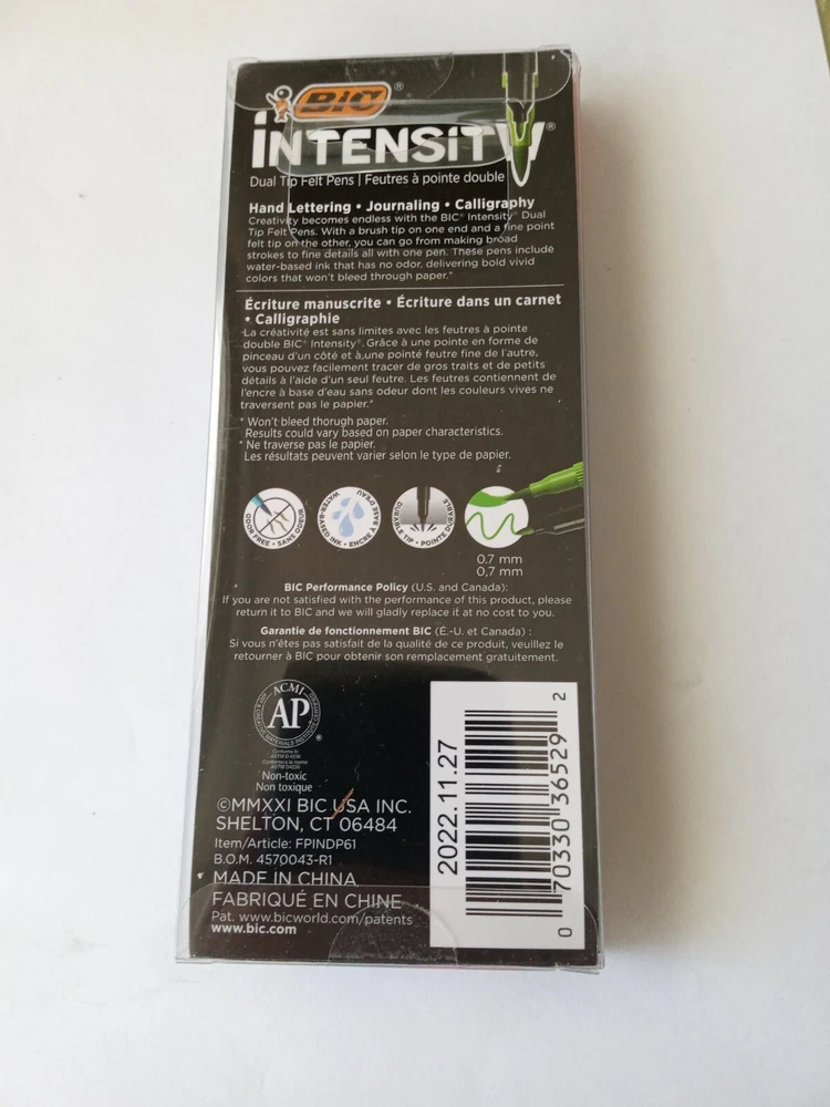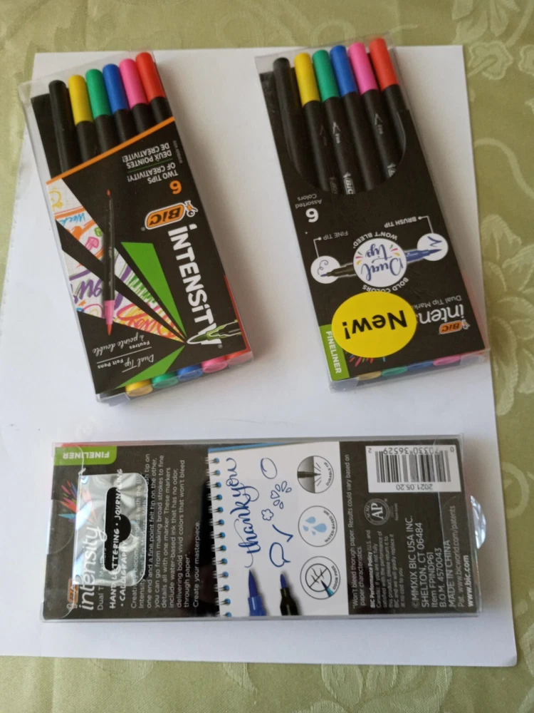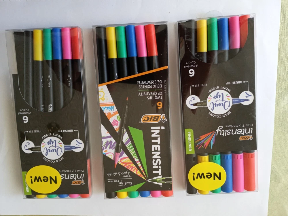 BIC Intensity 2-in-1 Dual Tip Fineliner Felt Pen, 6 Assorted Ink Colors Pack, 3 PACK