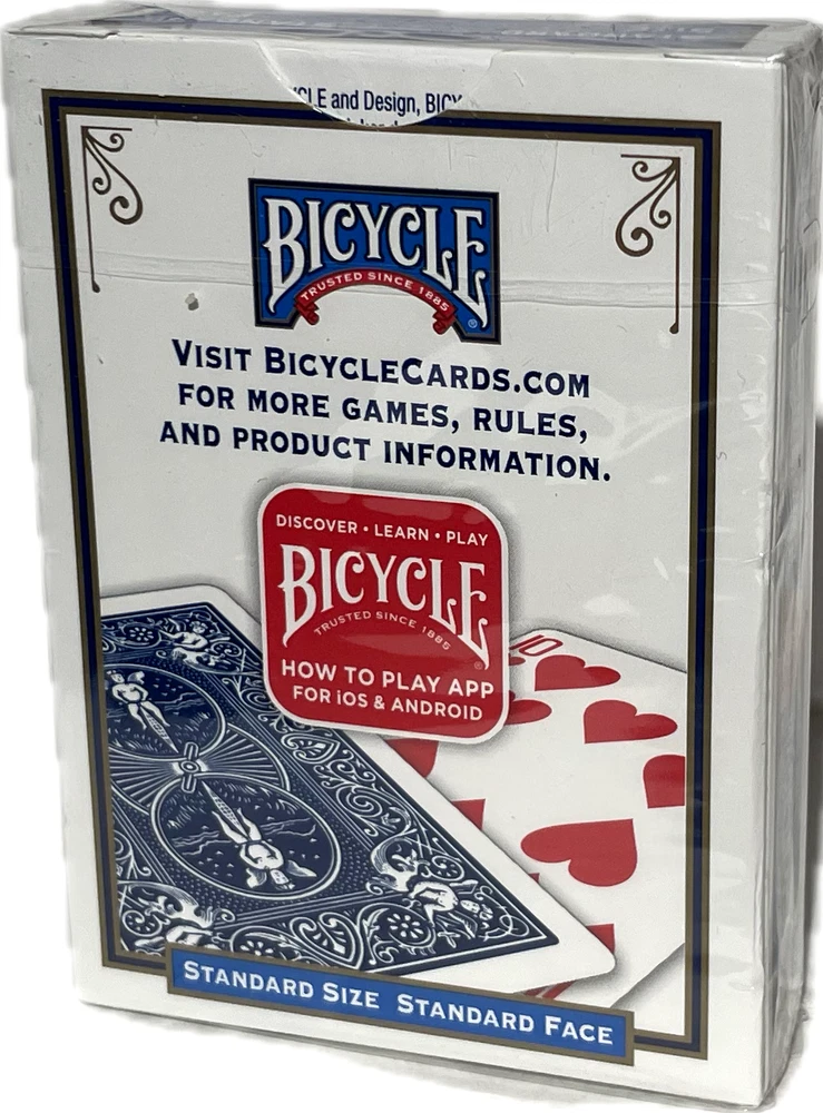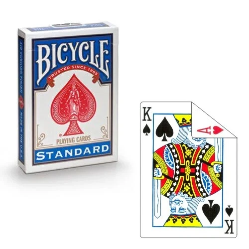 New Bicycle Double Faced Poker Deck! BEST PRICE ON EBAY! These double faced poker size decks are great for making up your own effects. SALE IS FOR ONE DECK. Double Face Gaff Deck Bicycle Factory Sealed Poker Size A regular bicycle deck with assorted face side on both sides. Most cards have different card values on each side and some have the same card value on both sides of the card and some are blank on one side. *This deck is factory sealed from the US Playing Card Company * 56 Card Deck * Box color varies WOW FREE SHIPPING! Robb. D - 5