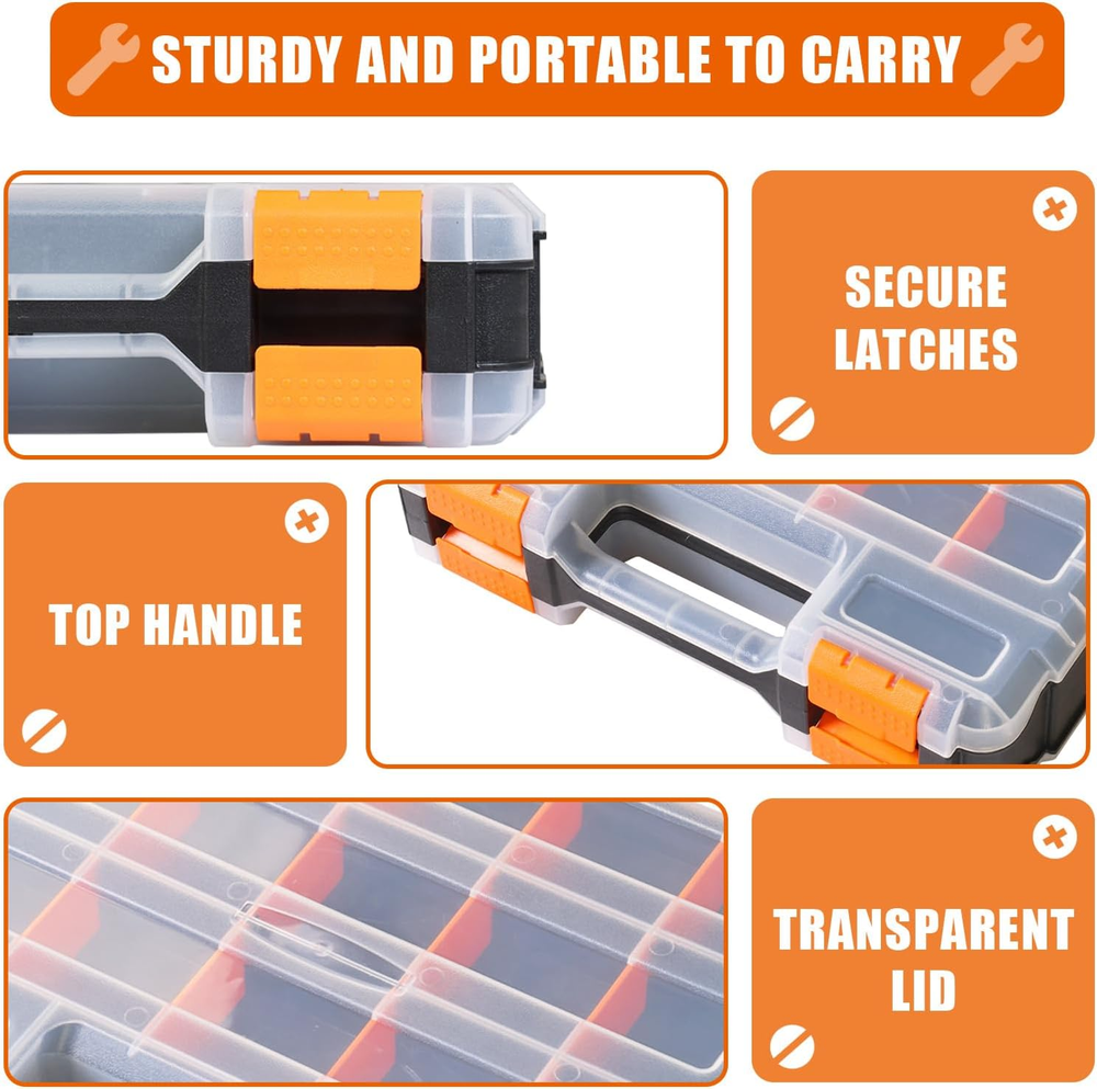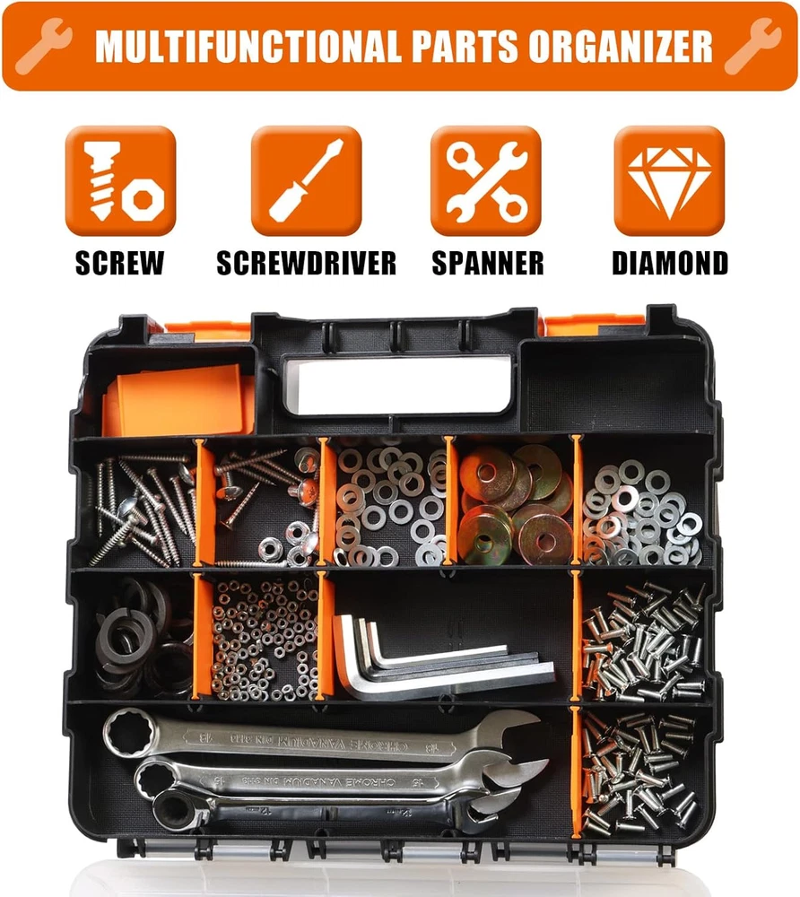 Store New Arrivals Add to Favorite View Feedback Contact BIG RED AG322R Torin Double Sided Tool and Hardware Storage Box: Portable Small Parts Organizer with Removable Plastic Dividers for Tools, Small Items and Jewelry, Black/Orange Description Item model number AG322R Style Small Parts Organizer Country of Origin China Usage Hardware Tools Batteries Required? No Number of Compartments 1 Brand BIG RED Material Plastic Maximum Weight Recommendation 13.22 Pounds Manufacturer Torin Item Package Quantity 1 Water Resistance Level Water Resistant Item Weight 2.32 pounds Finish Powder Coated Special Features Portable Part Number AG322R Mounting Type Tabletop Mount Color Multiple Shape Rectangular Included Components Plastic Tool box Product Dimensions 12.99"L x 11.02"W x 3.94"H Size 13" STURDY & DURABLE: Made of heavy-duty plastic material, this tool box has a double-sided design with 4 latches for good stability to keep items properly placed and unbreakable when dropped. REMOVABLE PARTITION DESIGN: 34-compartment double-sided organizer tool box with 30 removable dividers and 4 fixed dividers. The removable dividers are easy to slide on and off to customize the storage space you want. PORTABLE: This tool box organizer is very lightweight and it has a convenient carrying handle for easy PORTABILITY: It can be easily placed in the garage, closet, shed, car and other places, ideal for work and on the go. LARGE CAPACITY: This tool box organizer features double-sided design, ensuring ample storage space, suitable for storing various parts, keeping all your DIY accessories and tools convenient and tidy, measuring 11. 8" * 9. 8" * 2. 7". WIDE VERSATILITY: This tool box organizer is suitable for storing a variety of parts such as screws, nuts, bolts, fasteners, electrical connectors, beads, hair accessories, fishing gear and other items. This tool box organizer is made of heavy-duty plastic material,which has a double-sided design with 4 latches for good stability to keep items properly placed and unbreakable when dropped. 34-compartment double-sided organizer tool box with 30 removable dividers and 4 fixed dividers. The removable dividers are easy to slide on and off to customize the storage space you want. This tool box organizer is very lightweight and it has a convenient carrying handle for easy PORTABILITY: It can be easily placed in the garage, closet, shed, car and other places, ideal for work and on the go. This tool box organizer features double-sided design, ensuring ample storage space, suitable for storing various parts, keeping all your DIY accessories and tools convenient and tidy, measuring 11. 8" * 9. 8" * 2. 7". This tool box organizer is suitable for storing a variety of parts such as screws, nuts, bolts, fasteners, electrical connectors, beads, hair accessories, fishing gear and other items. If you meet any problems, please feel free to contact our customer service team and we will do our best to help you fix your issues. ABOUT US We offer the best prices around on high quality products. Our E-store includes media such as books, movies, music and games while offering electronics, toys, sporting apparel, clothing, tools, general home, garden items and more. SHIPPING We are always working hard to ensure your package arrives as soon as possible. Please understand that some factors like weather, high postal traffic, and the performance of shipping companies are outside of our control. We offer free shipping to the lower 48 states and ship within 2 business days of payment, usually sooner. We do not accept P.O. Boxes. Please provide a physical address. RETURNS We offer a 30-Day Return Policy on items which you are not completely satisfied with. You have the option for a full-refund or an exchange of the item. No returns are available on items shipped outside of the USA. PAYMENT We accept PayPal. CONTACT US This page content is yet to come Please ad us to your favorite seller and visit again later Thank You CUSTOMER SATISFACTION We try our very best to make sure every customer is completely satisfied. If there's a problem, message us! We're happy to help.