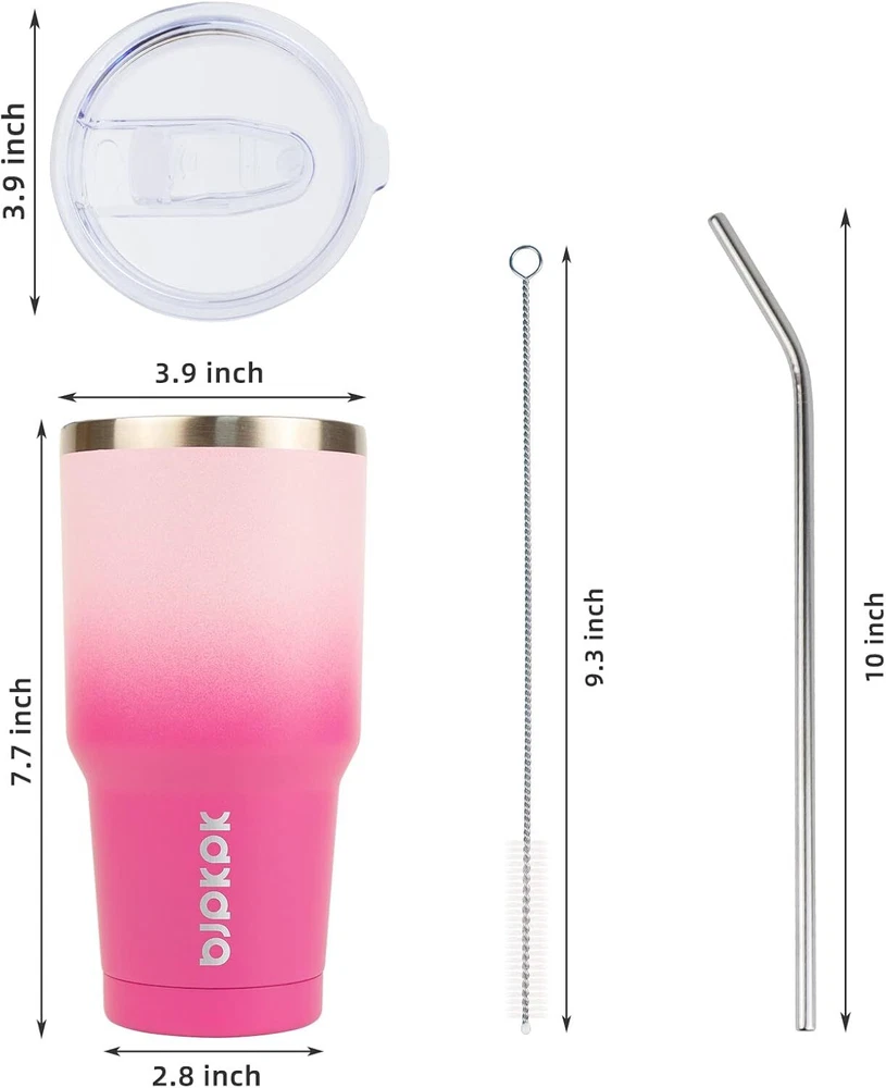 BJPKPK 30 oz Tumbler With Lid And Straw Travel 30oz, A-Cherry Blossom-30oz Product Details Brand: BJPKPK Color: A-Cherry Blossom-30oz Special Feature: Leak Proof, Non-Slip, Break Resistant, Scratch Resistant Style: Modern Theme: Beach Recommended Uses For Product: Travel, Home Included Components: Lid, Brush, Straw Specific Uses For Product: Cold Drinks, Hot Drinks Shape: Round Pattern: Solid Product Care Instructions: Hand Wash Only Age Range (Description): Adult Material Feature: Insulated Reusability: Reusable Unit Count: 1.0 Count Product Dimensions: 3.9"W x 7.9"H Material Type Free: BPA Free Number of Items: 1 Manufacturer: BJPKPK Size: 30oz Item Weight: 14.1 ounces Department: Unisex-Adult Country of Origin: China Item model number: Tum0805 MaterialCapacity: Stainless Steel30 Fluid Ounces OccasionItem Weight: Mother's Day, Christmas, Father's Day, Halloween, ThanksgivingMother's Day, Christmas, Father's Day, Halloween, ThanksgivingMother's Day, Christmas, Father's Day, Halloween, Thanksgiving See more 0.88 Pounds Made of 18/8 food grade stainless steel, BJPJPK insulated tumblers adopt double walled vacuum insulation that can keep your beverage hot or cold for hours, no need to put ice cubes in your mug anymore, no more worrying about the drink sweat and make rings on your table The insulated tumbler cup come with 2 BPA free lids, the sip design lid allow you to sip, drink or gulp, choose your own way for drinking, the other leak proof lid with simple push-on operation fully avoid splash or spill This insulated coffee mug has a narrow bottom design which make it fits most cup holder in car, the special design makes the vacuum tumbler perfectly fits all the people, men can hold its upper part and women with small size hand can hold the bottom part With 30 oz capacity, the jug is enough for both daily use or travelling, fits car cup holders, designed with non-sweat design, the outer layer is coated with powder which can keep your tumbler dry and neat when holding, take the travel tumbler together when you go outdoor activities is a nice choice BJPJPK provide various colors and styles tumblers for customers, just choose the one you like best, these tumblers are also wonderful gifts options for friends or family, Package include: 1 x 30 oz water tumbler, 2 x lids, 1 x straw, 1 x straw brush BJPKPK 30oz Insulated Tumbler with Lids and Straw, Stainless Steel Travel Coffee Tumbler,Powder Coated Travel Mug-Cherry Blossom